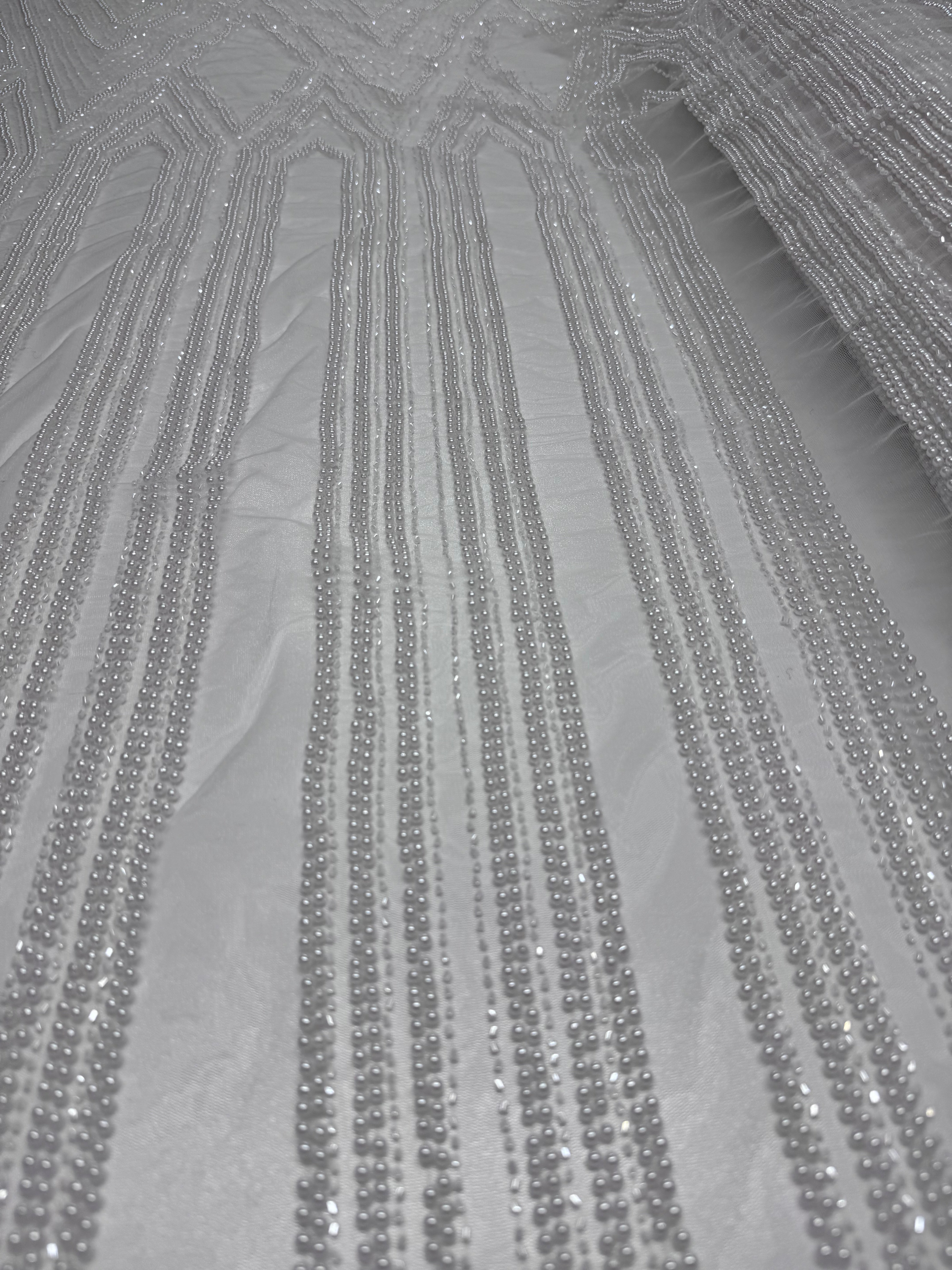 Beaded Lace fabrics are versatile and widely used in various applications. They are commonly found in bridal wear, clothing, home décor, accessories, costumes, bridal veils and lingerie. Lace adds elegance, femininity, and a touch of romance to any item it adorns, making it a popular choice for formal wear, bridal wear and special occasions.
