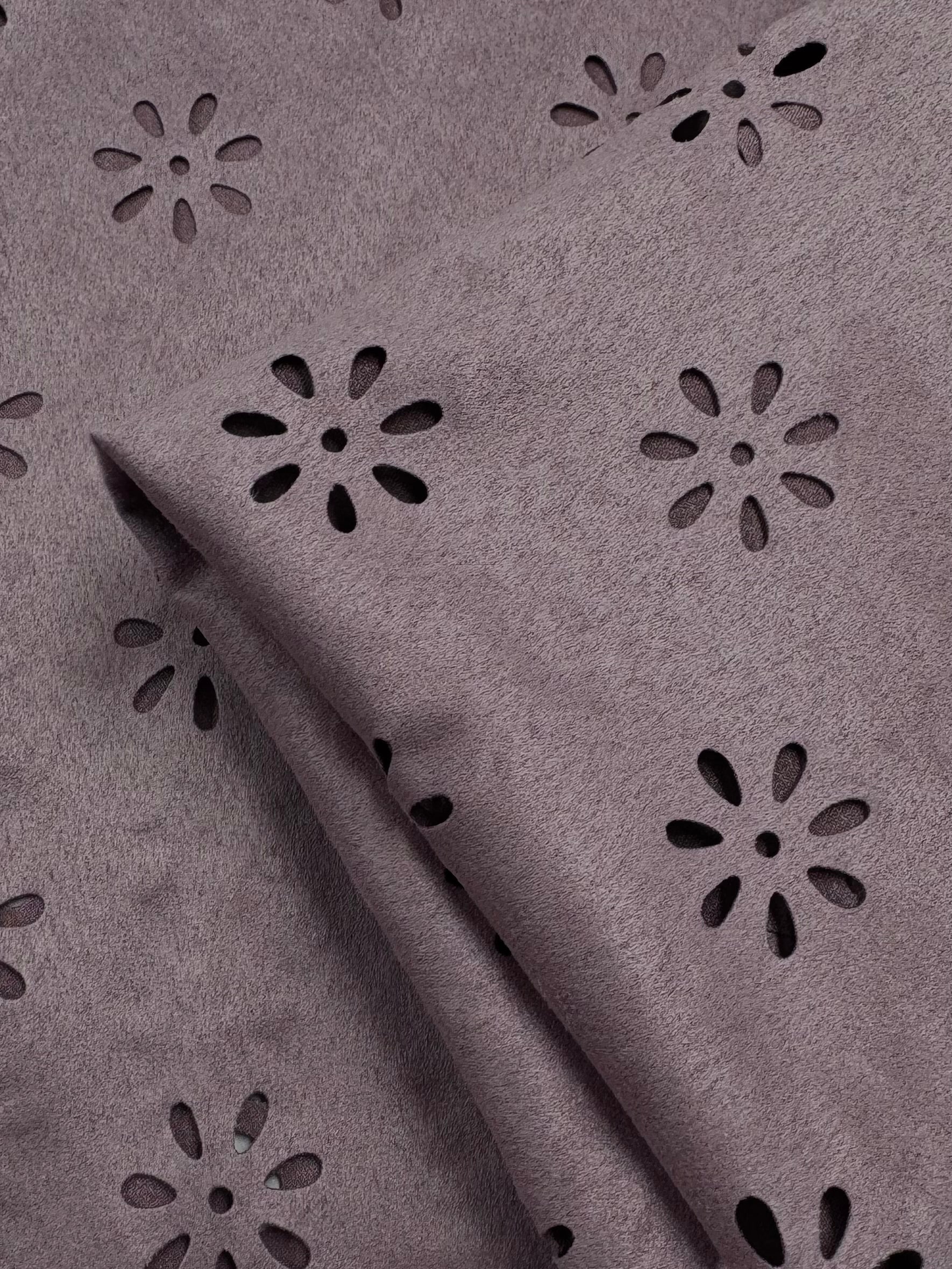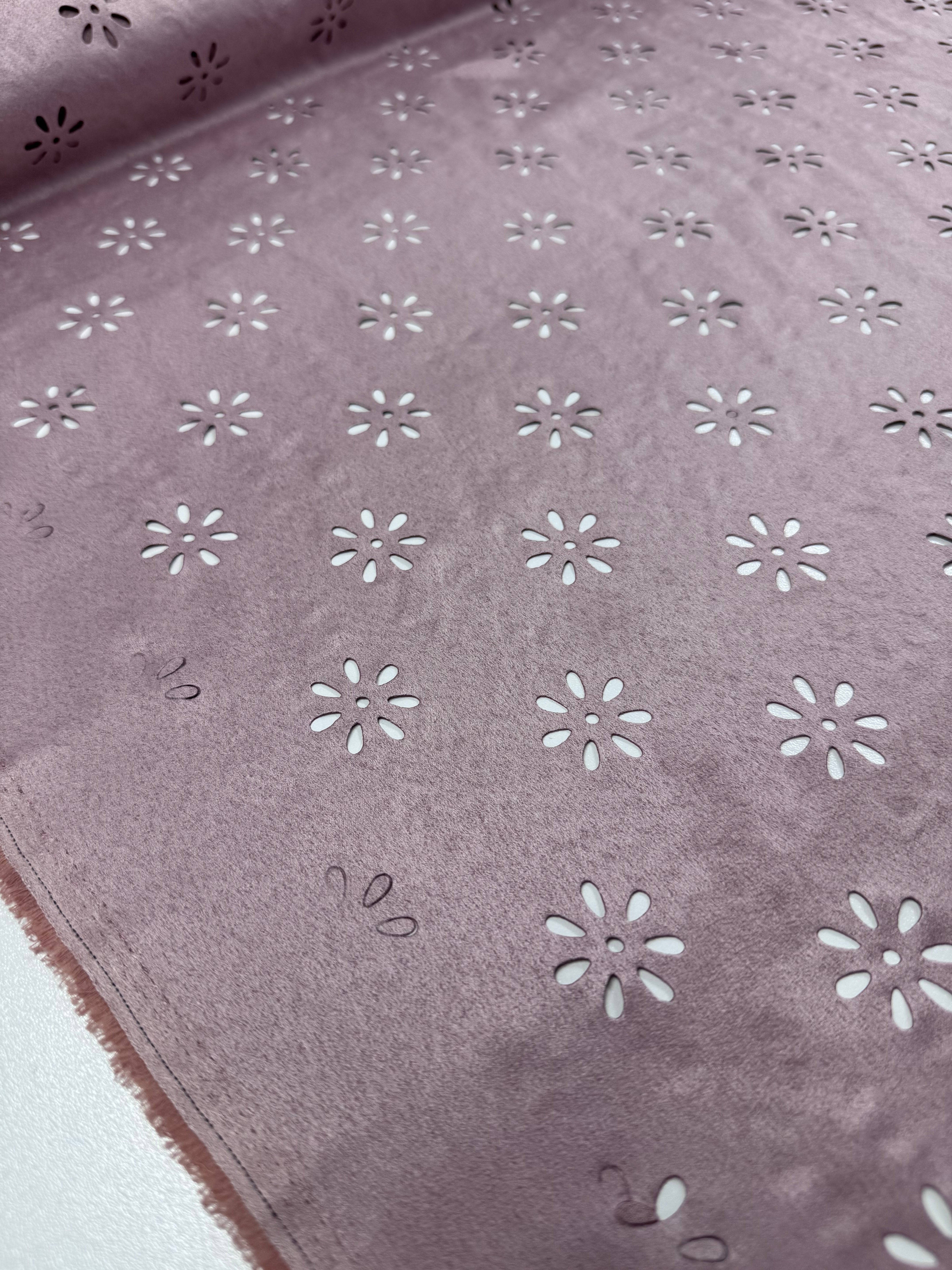 A Laser Cut Faux Suede , stretchy and boasts a beautiful drape. Perfect for all your sewing needs.