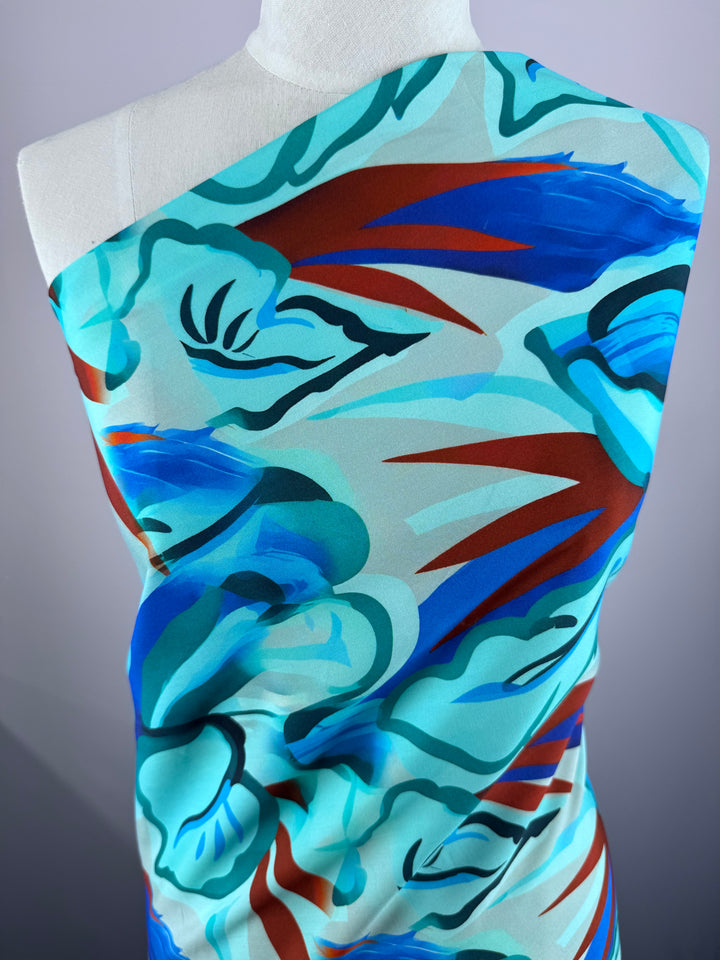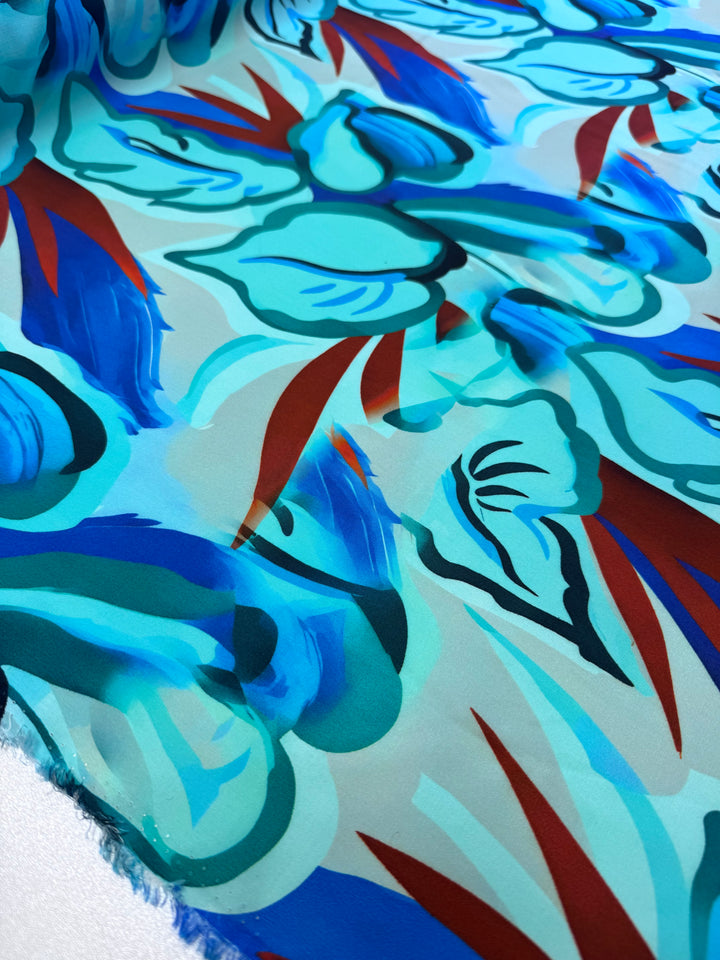 Our Designer Rayon showcases a beautiful and colourful fabric with vibrant prints that can be used for various purposes such as dresses, skirts, blouses, curtains, and more. Our collection showcases a soft, lightweight fabric with a smooth drape and a luxurious feel. Overall, rayon fabric offers both comfort and style, making it a versatile choice for any project.