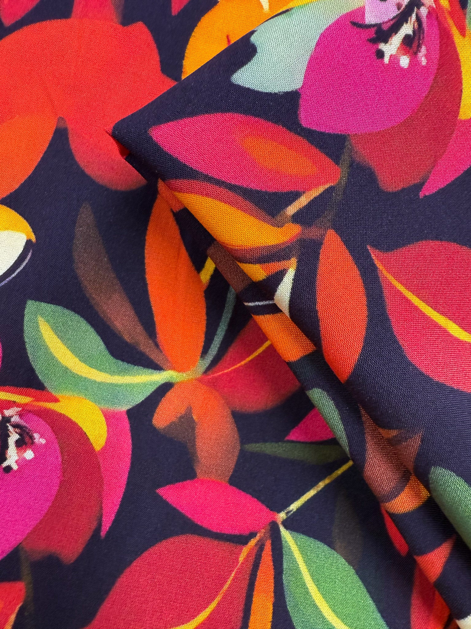Our Designer Rayon showcases a beautiful and colourful fabric with vibrant prints that can be used for various purposes such as dresses, skirts, blouses, curtains, and more. Our collection showcases a soft, lightweight fabric with a smooth drape and a luxurious feel. Overall, rayon fabric offers both comfort and style, making it a versatile choice for any project.