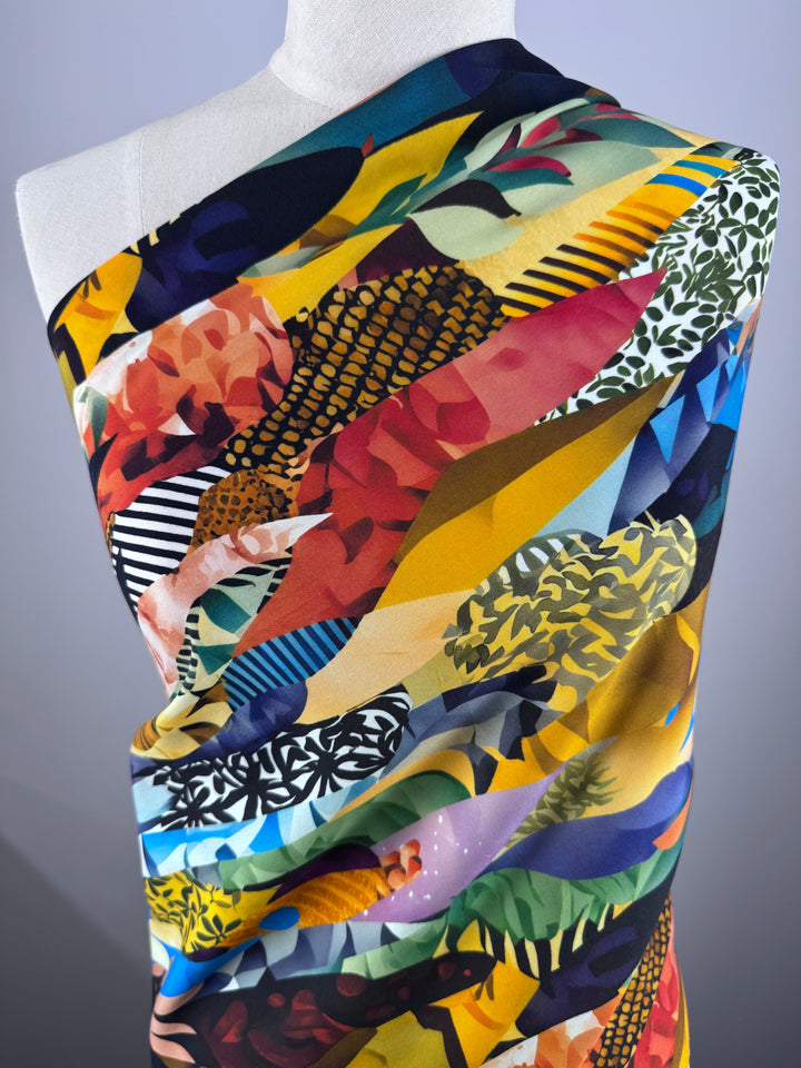 Our Designer Rayon showcases a beautiful and colourful fabric with vibrant prints that can be used for various purposes such as dresses, skirts, blouses, curtains, and more. Our collection showcases a soft, lightweight fabric with a smooth drape and a luxurious feel. Overall, rayon fabric offers both comfort and style, making it a versatile choice for any project.