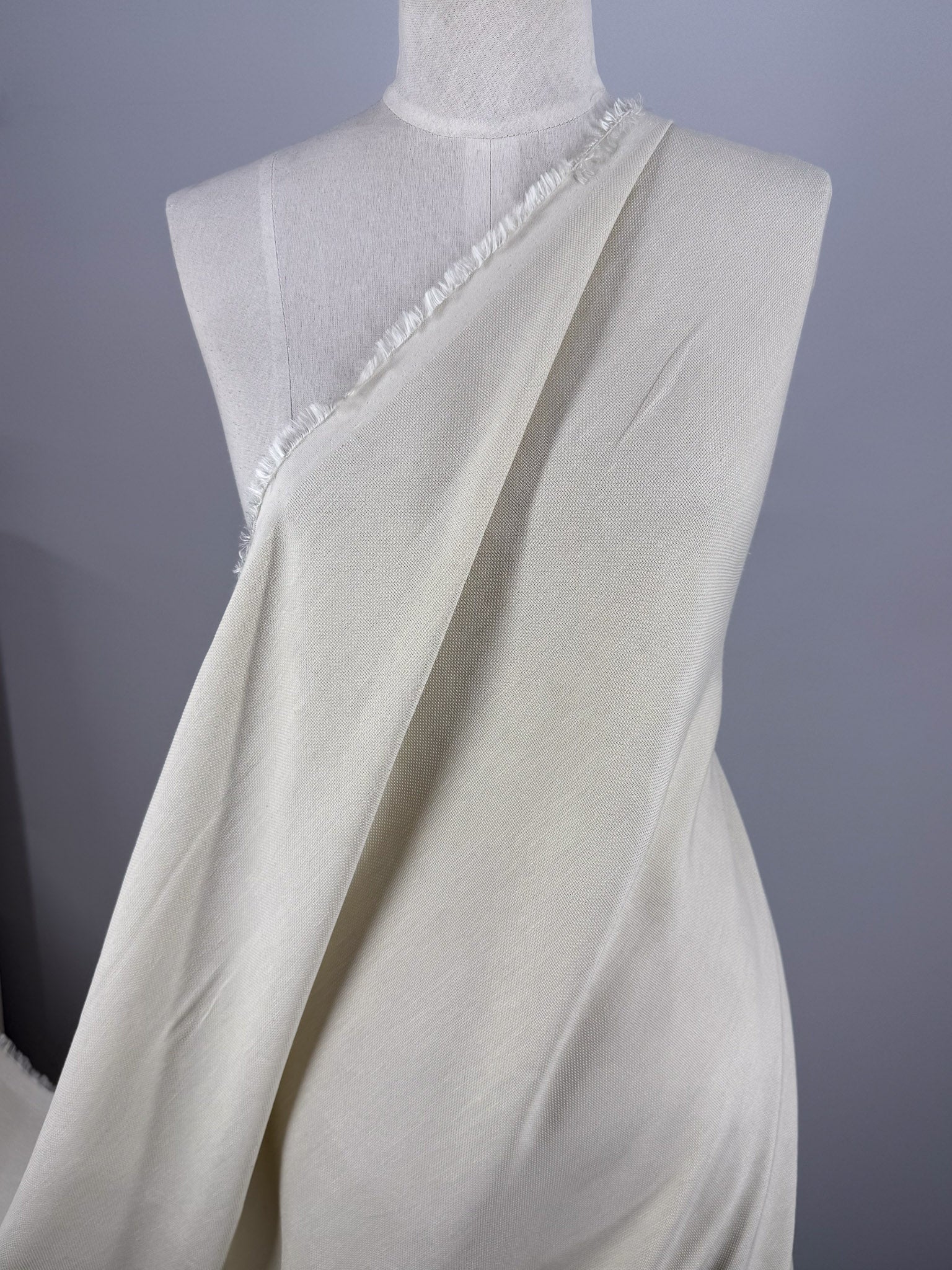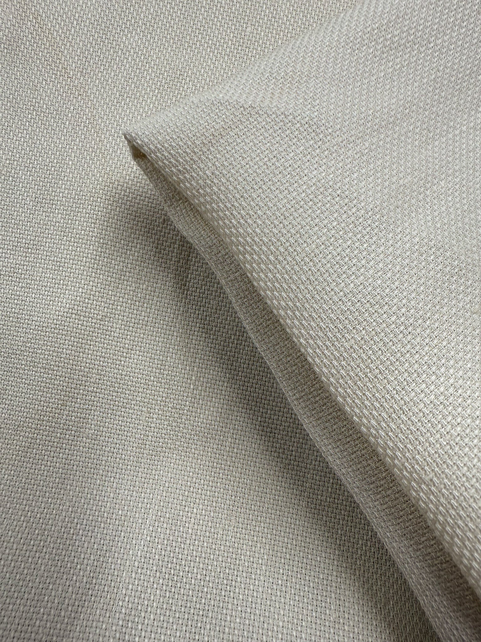 A textured hopsack cream linen with a refined matte finish with a bit of stretch.
