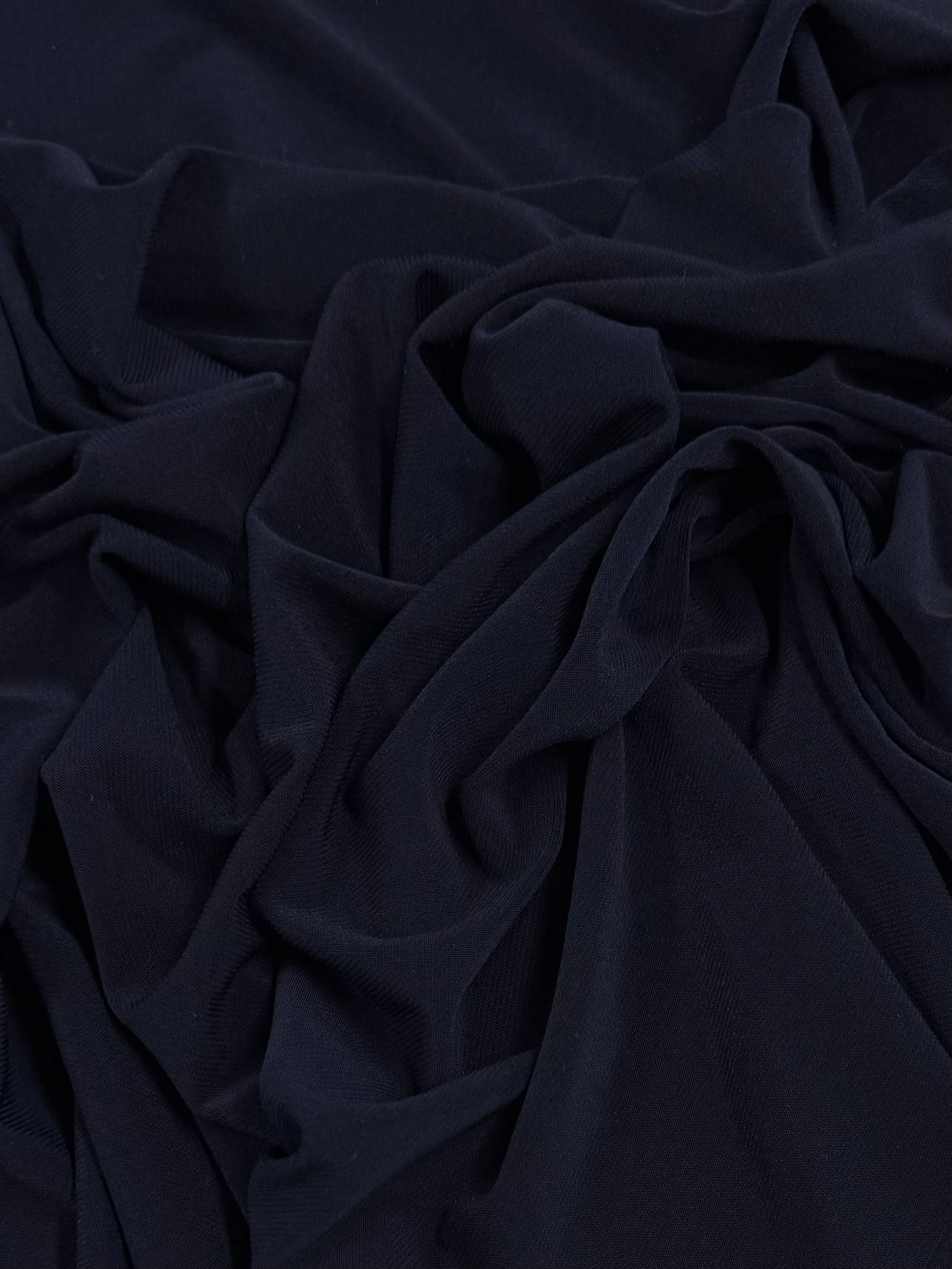 A beautiful plain, interlock twist yarn fabric. This opaque fabric has been knit to have great elasticity and a soft touch. This medium weight fabric is the perfect weight for tops, dresses skirts and loose pants.