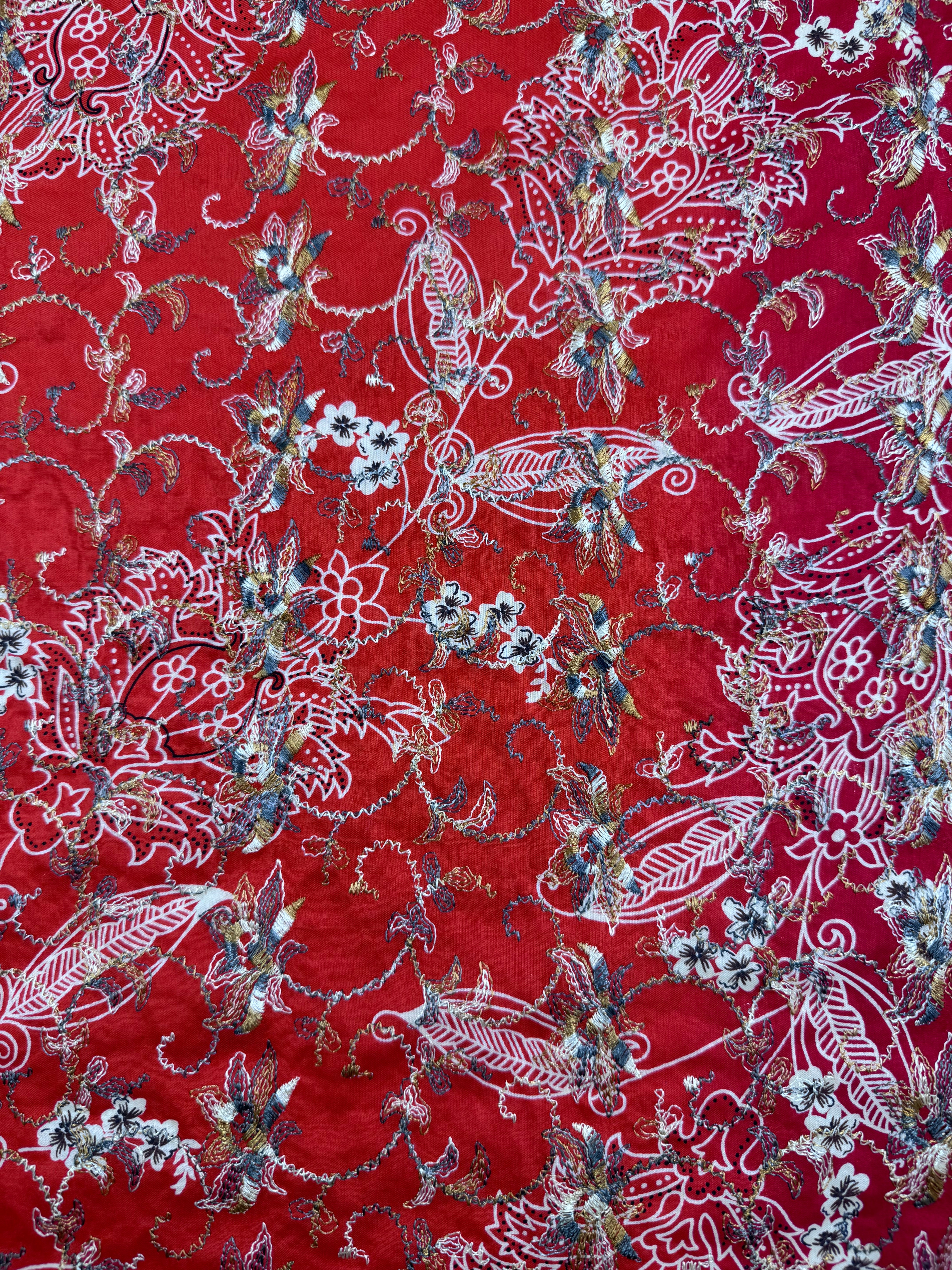 Japanese Broderie Anglaise- Red - 106cm