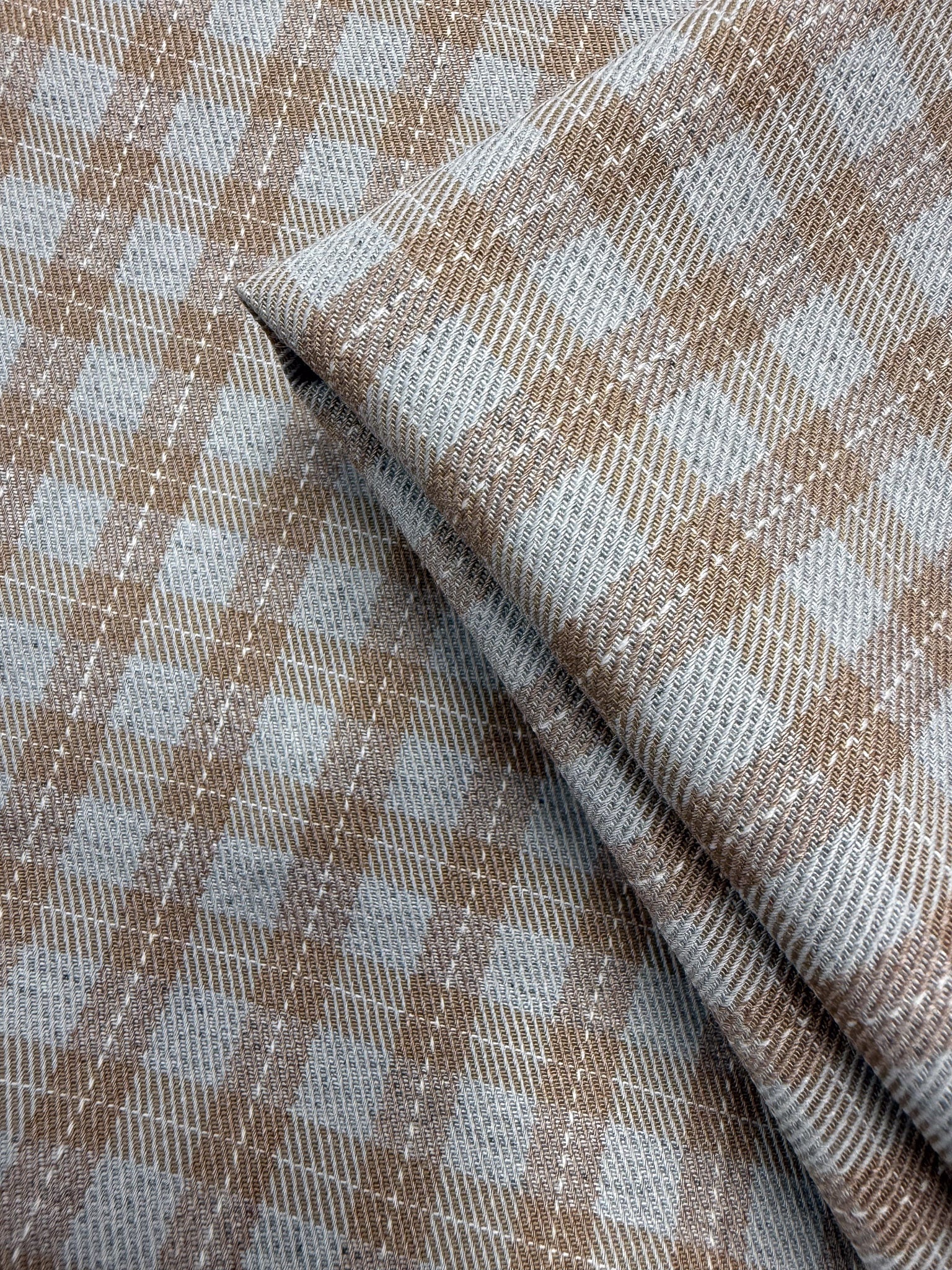 This pure linen has a soft neutral palette with a woven tan and oat check, balanced and versatile.