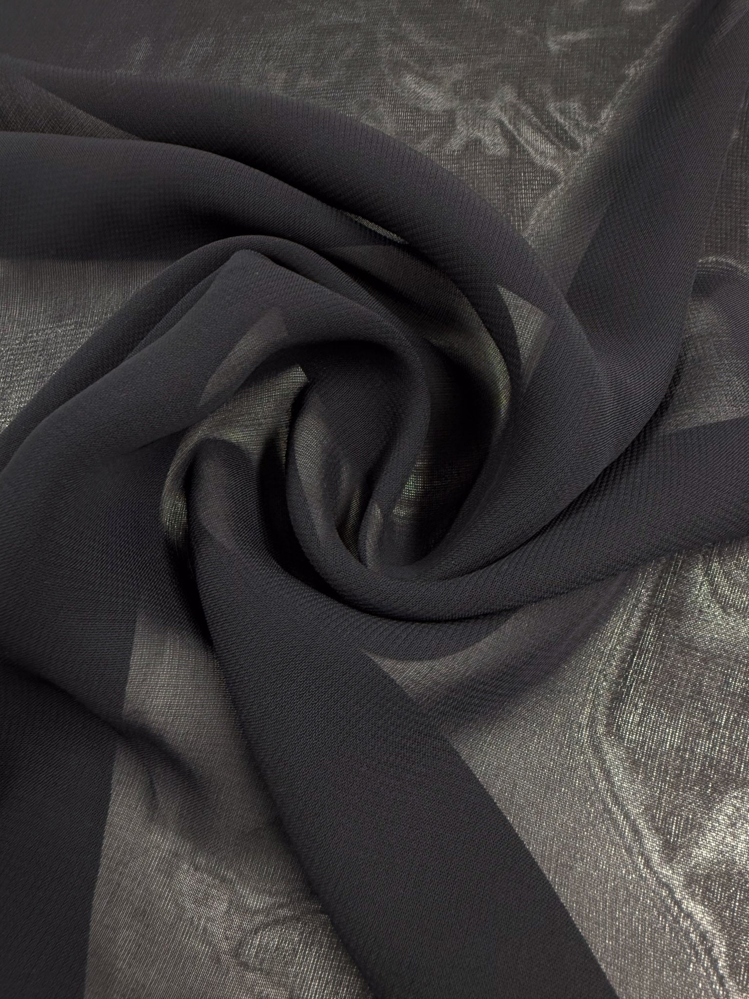 A light weight, sheer fabric with a beautiful Georgette and a soft touch. This sheer fabric can be layered to build depth in colour or combined with other fabrics to create a different look. This fabric is the perfect weight for floaty tops, shirts, lined skirts, and lined dresses.