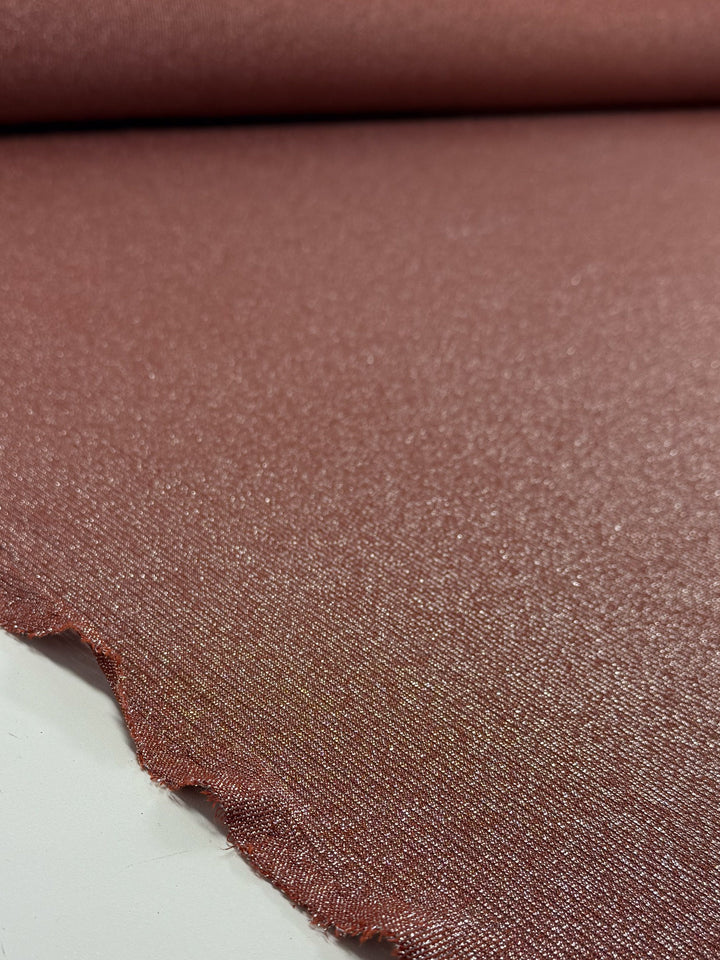 A rich viscose lurex knit with a subtle shimmer and soft, fluid drape. Lightweight and comfortable, this ribbed Knit is ideal for elegant tops, dresses, and relaxed eveningwear.