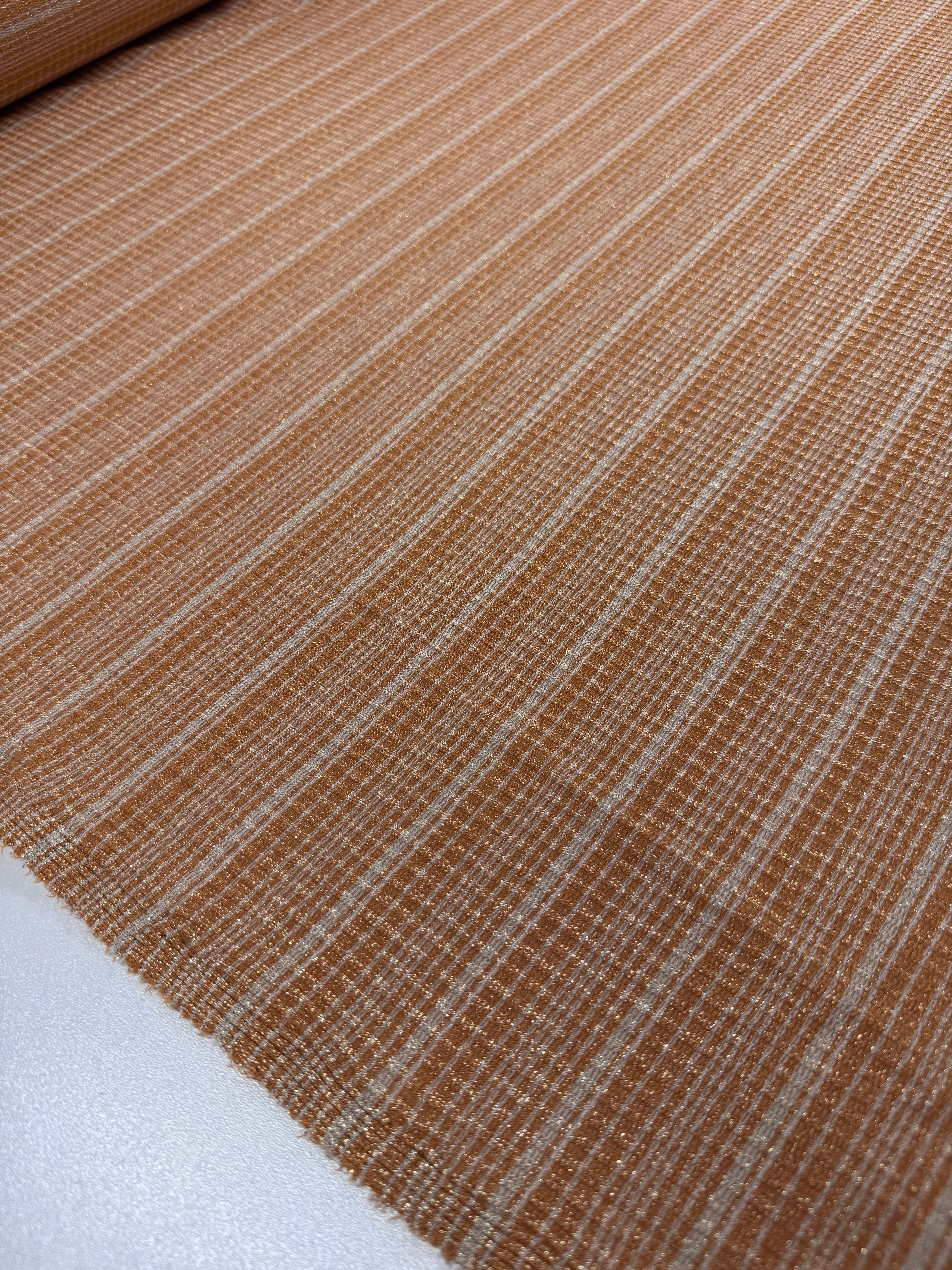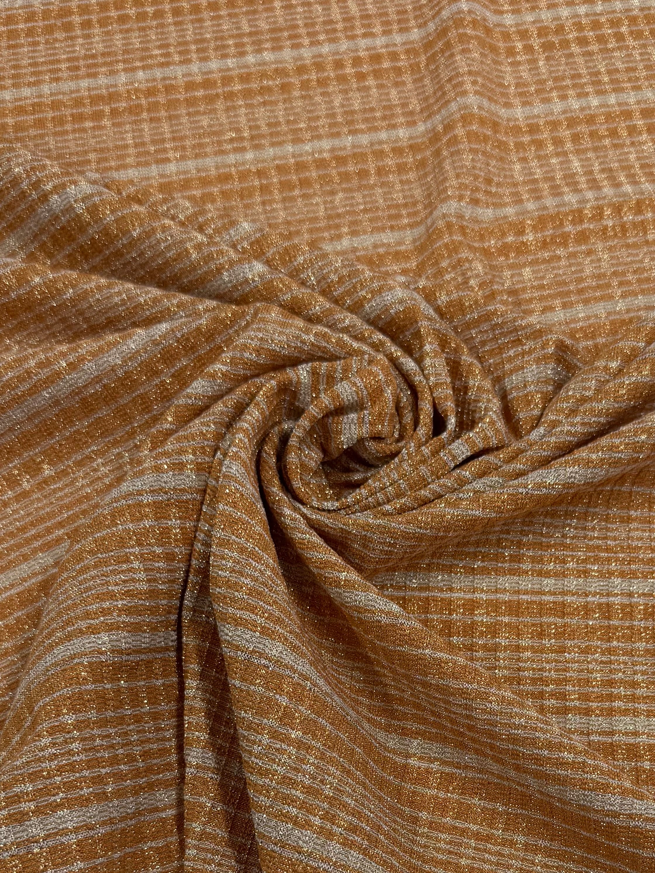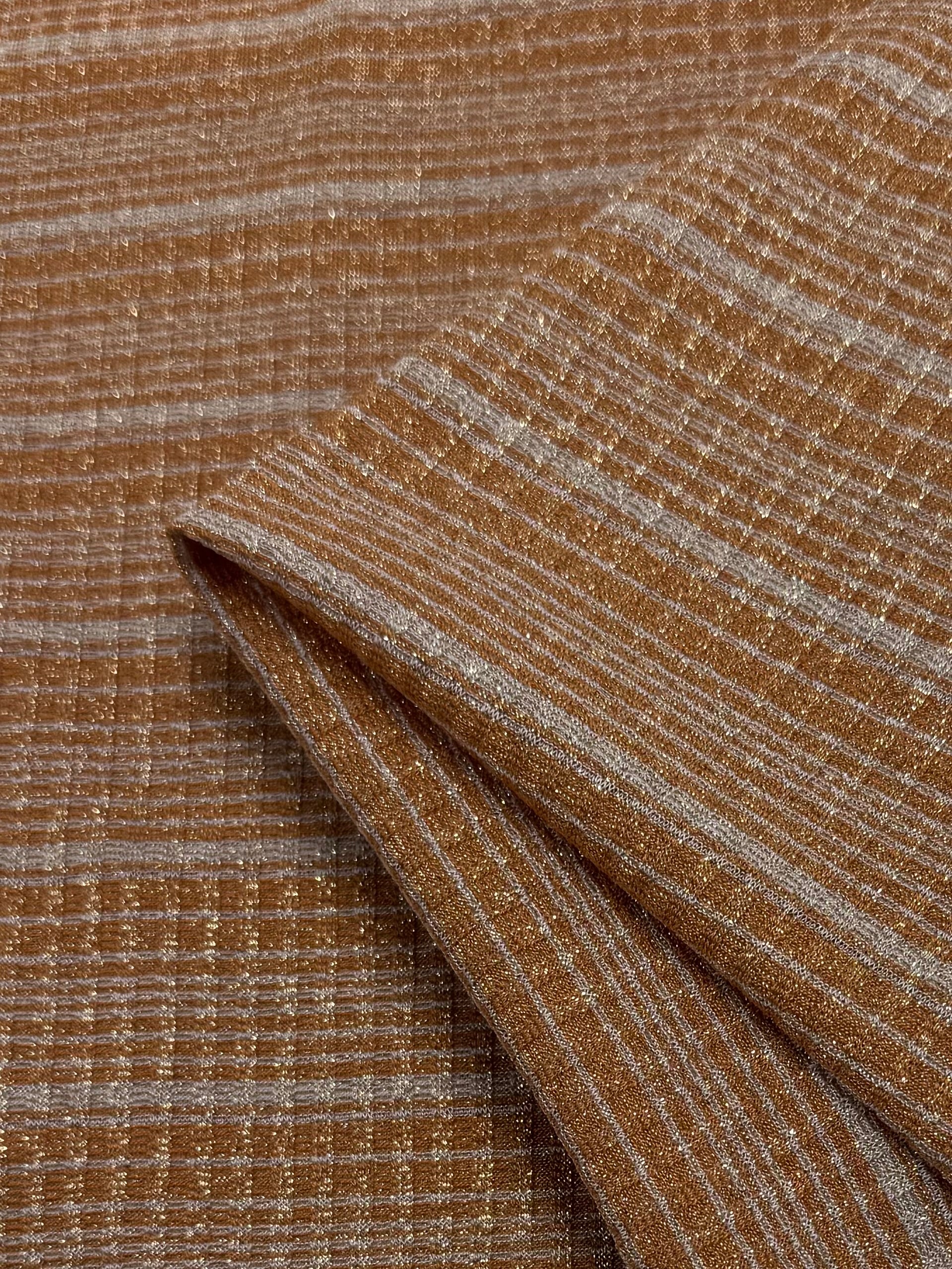 A rich viscose lurex knit with a subtle shimmer and soft, fluid drape. Lightweight and comfortable, this ribbed Knit is ideal for elegant tops, dresses, and relaxed eveningwear.