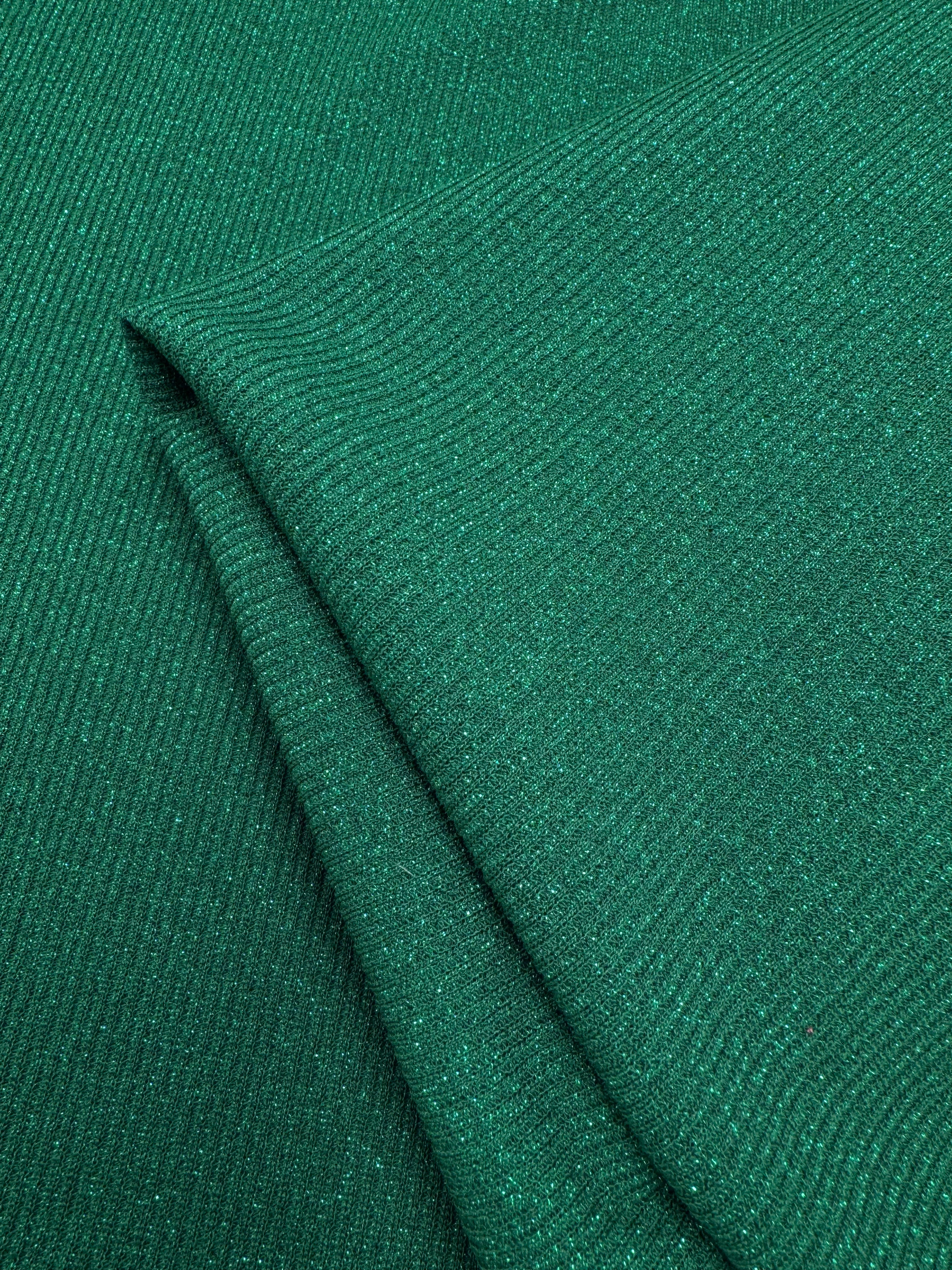 A rich viscose lurex knit with a subtle shimmer and soft, fluid drape. Lightweight and comfortable, this ribbed Knit is ideal for elegant tops, dresses, and relaxed eveningwear.