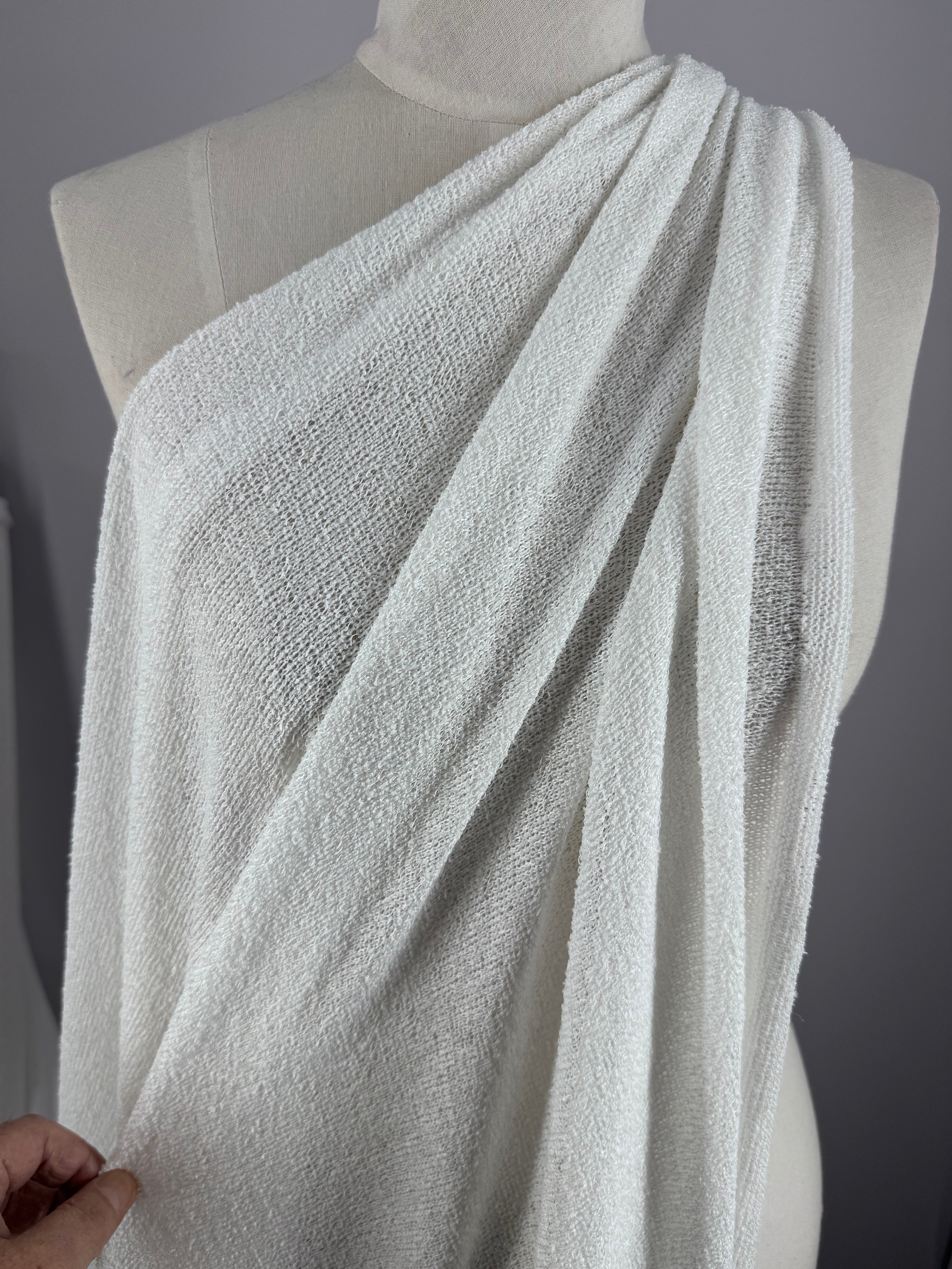 A delicate lace with a gorgeous White colour, stretchy and boasts a beautiful drape. Perfect for beach cover and any style tops or dresses.