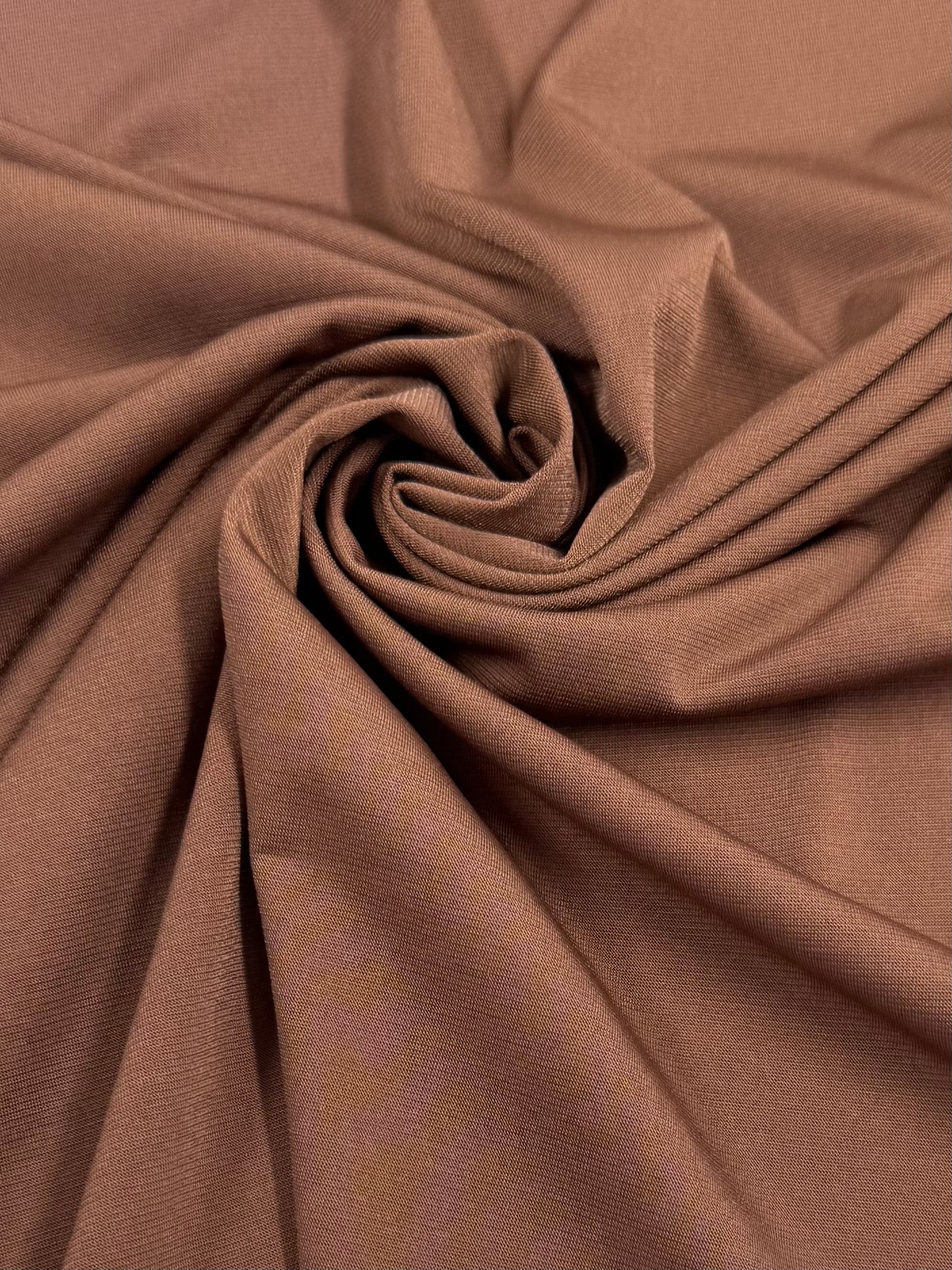 Interlock twist yarn fabric. This opaque fabric has been knit to have great elasticity and a soft touch. This medium weight fabric is the perfect weight for tops, dresses skirts and loose pants.