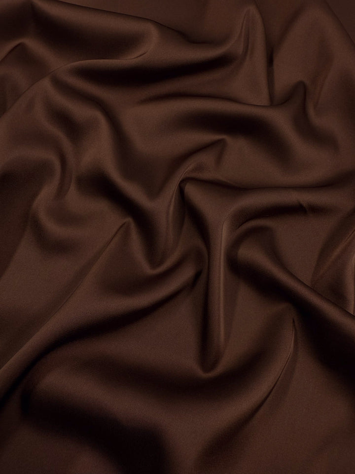 A matte, luxury fabric often used for nightgowns. Satin refers to the weave, not the textile, and most fabrics characterised as satin have a soft, shiny yet matte finish. No spandex however this satin has some give.