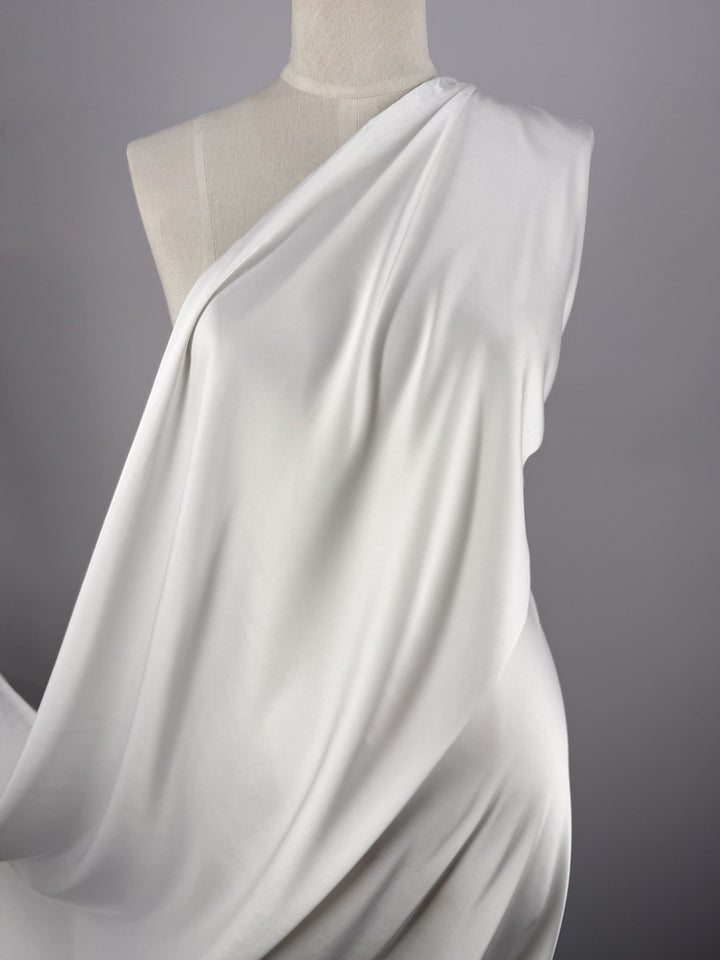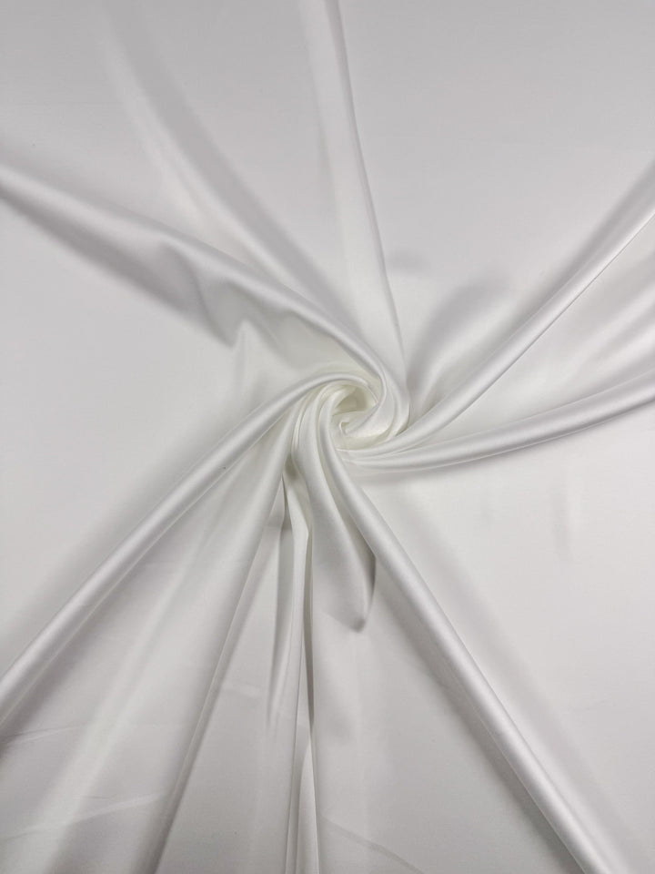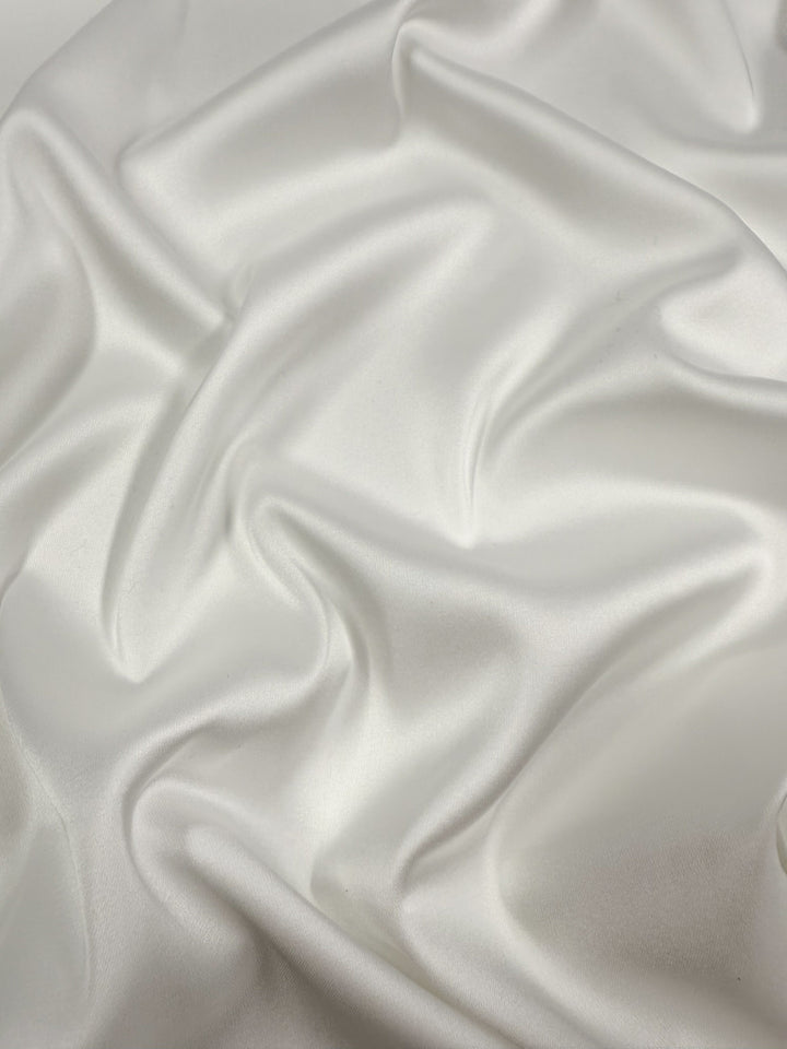 A matte, luxury fabric often used for nightgowns. Satin refers to the weave, not the textile, and most fabrics characterised as satin have a soft, shiny yet matte finish. No spandex however this satin has some give.