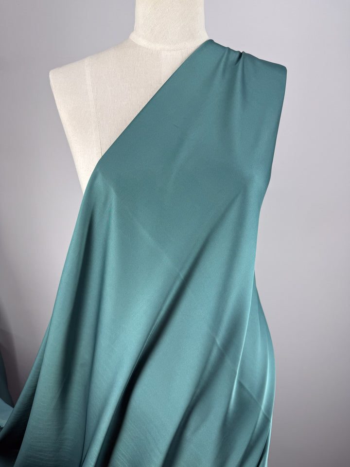 A matte, luxury fabric often used for nightgowns. Satin refers to the weave, not the textile, and most fabric characterised as satin has a soft, shiny yet matte finish. No spandex however this satin has some give.