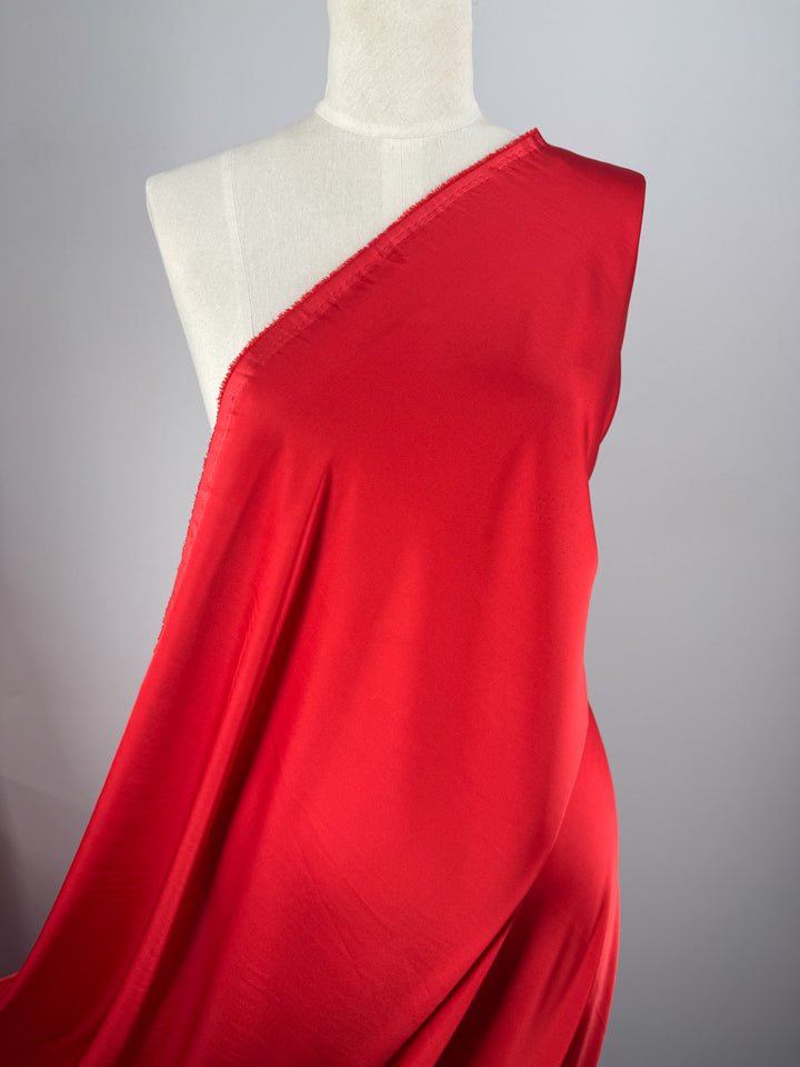 A matte, luxury fabric often used for nightgowns. Satin refers to the weave, not the textile, and most fabrics characterised as satin have a soft, shiny yet matte finish. No spandex however this satin has some give.