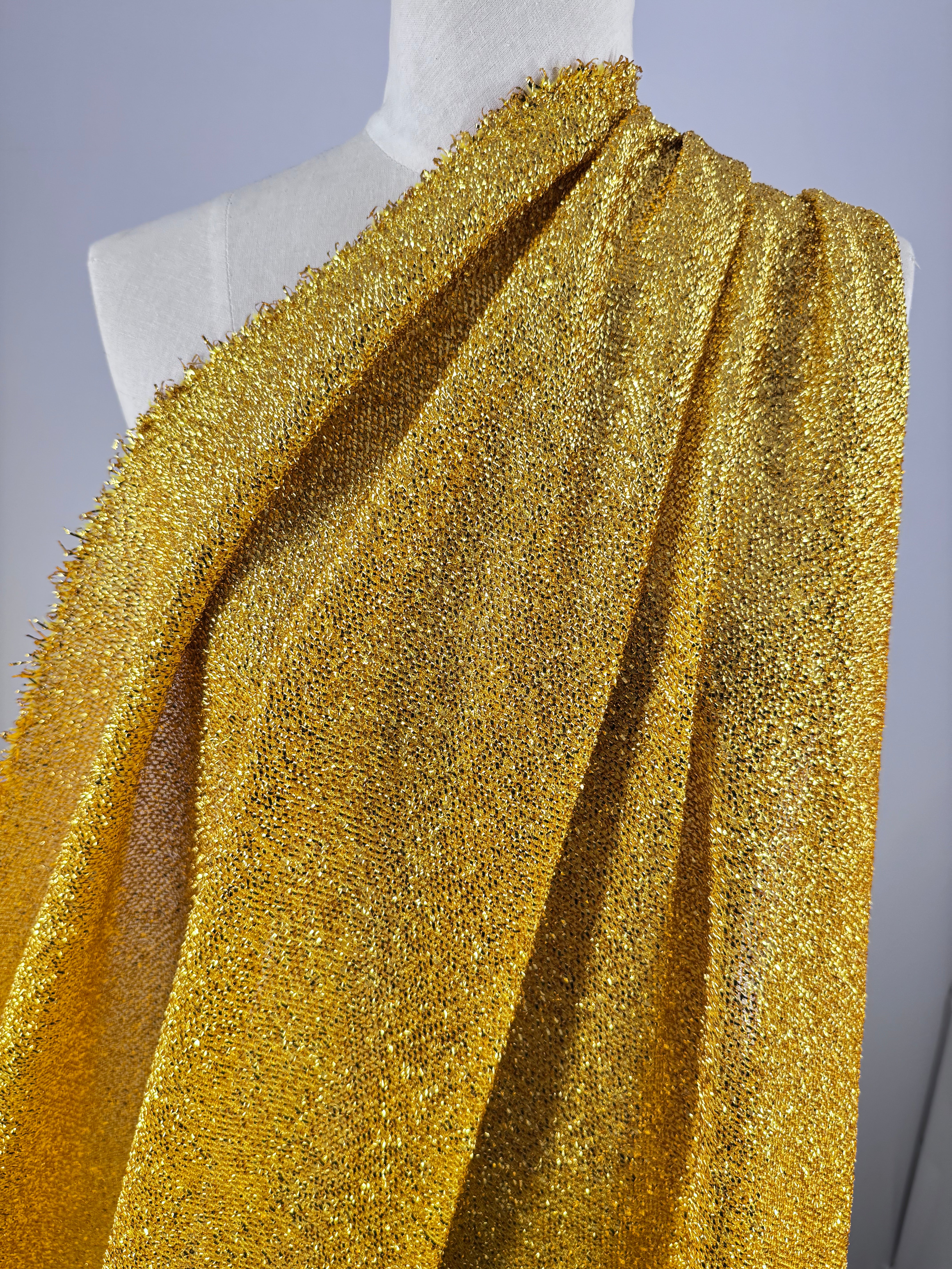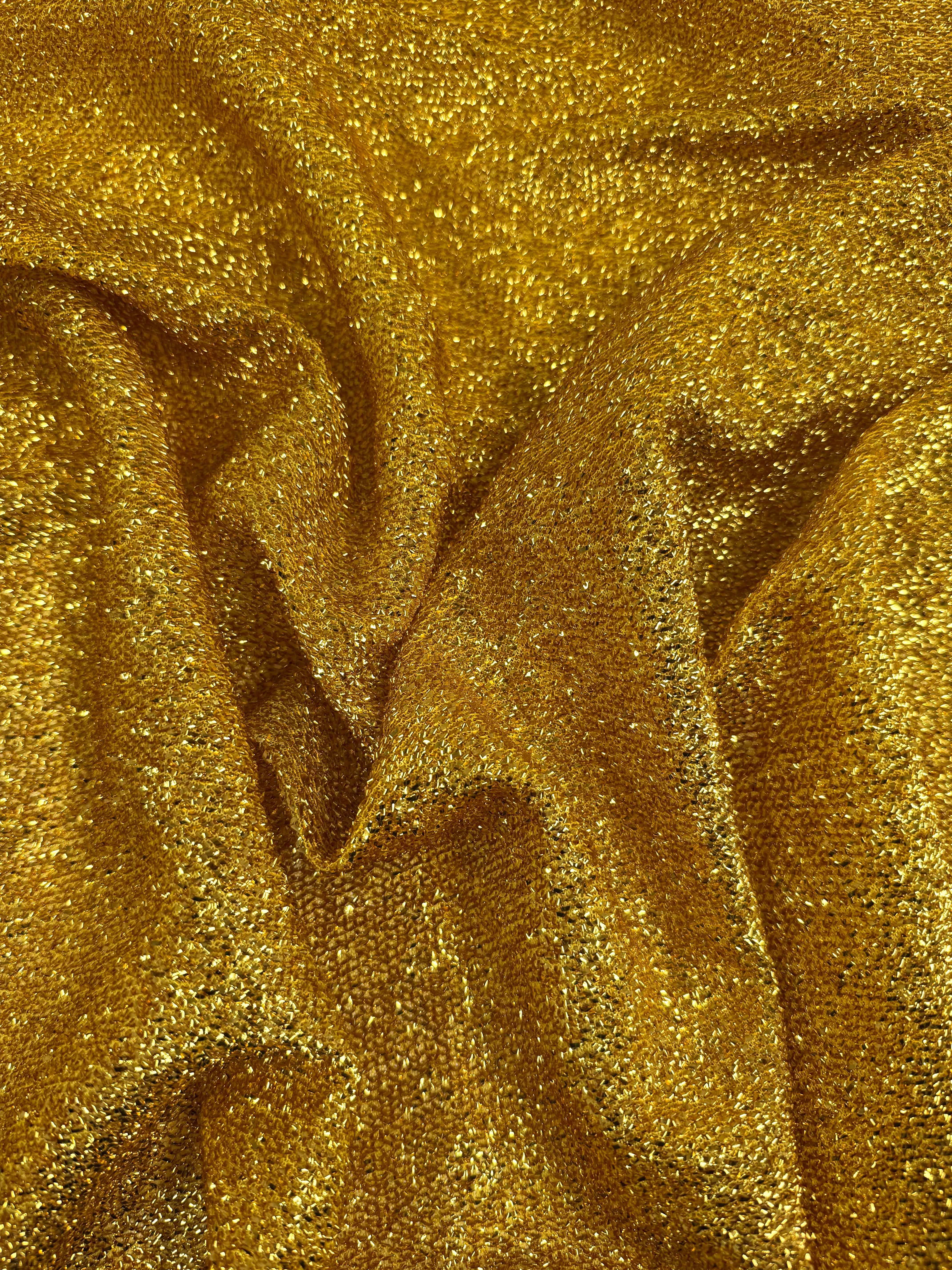 A soft, flexible Lurex Stretch Knit designed with a subtle shimmer and a comfortable stretch. This fabric drapes beautifully, offering a smooth feel with added elasticity that makes it easy to sew and flattering to wear. The knitted structure provides breathability while the metallic thread adds a touch of refinement, making it ideal for both casual and elevated looks. Versatile, durable, and perfect for garments or creative projects that need movement and a hint of shine.
