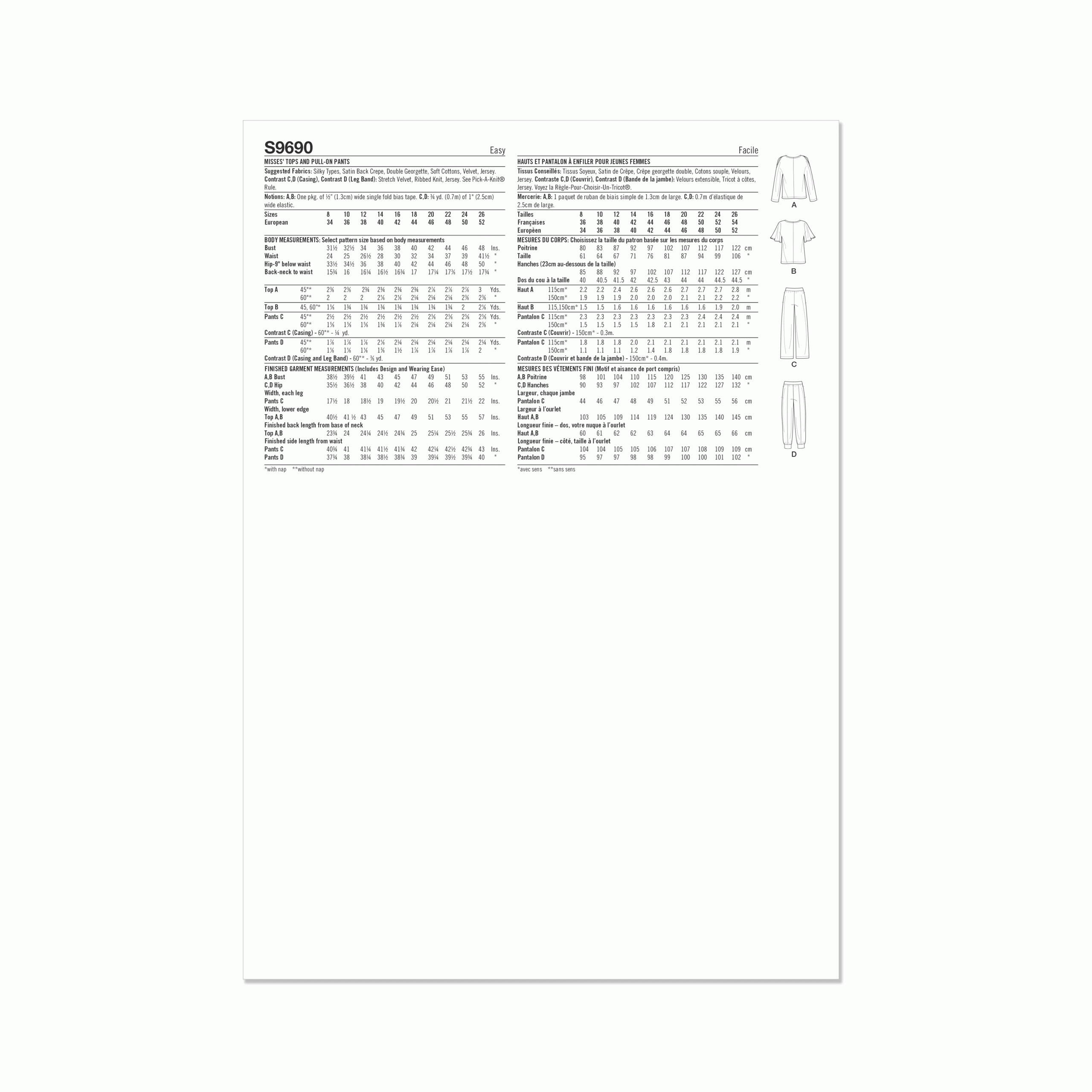 Pattern - Simplicity - S9690 - Misses’ Tops and Pull-On Trousers