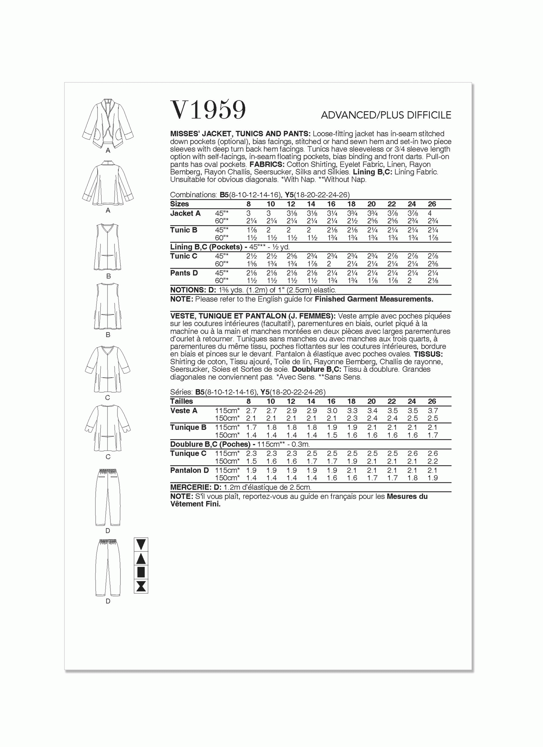 Pattern - Vogue - V1959 - Misses’ Jacket, Tunics and Trousers by Marcy Tilton