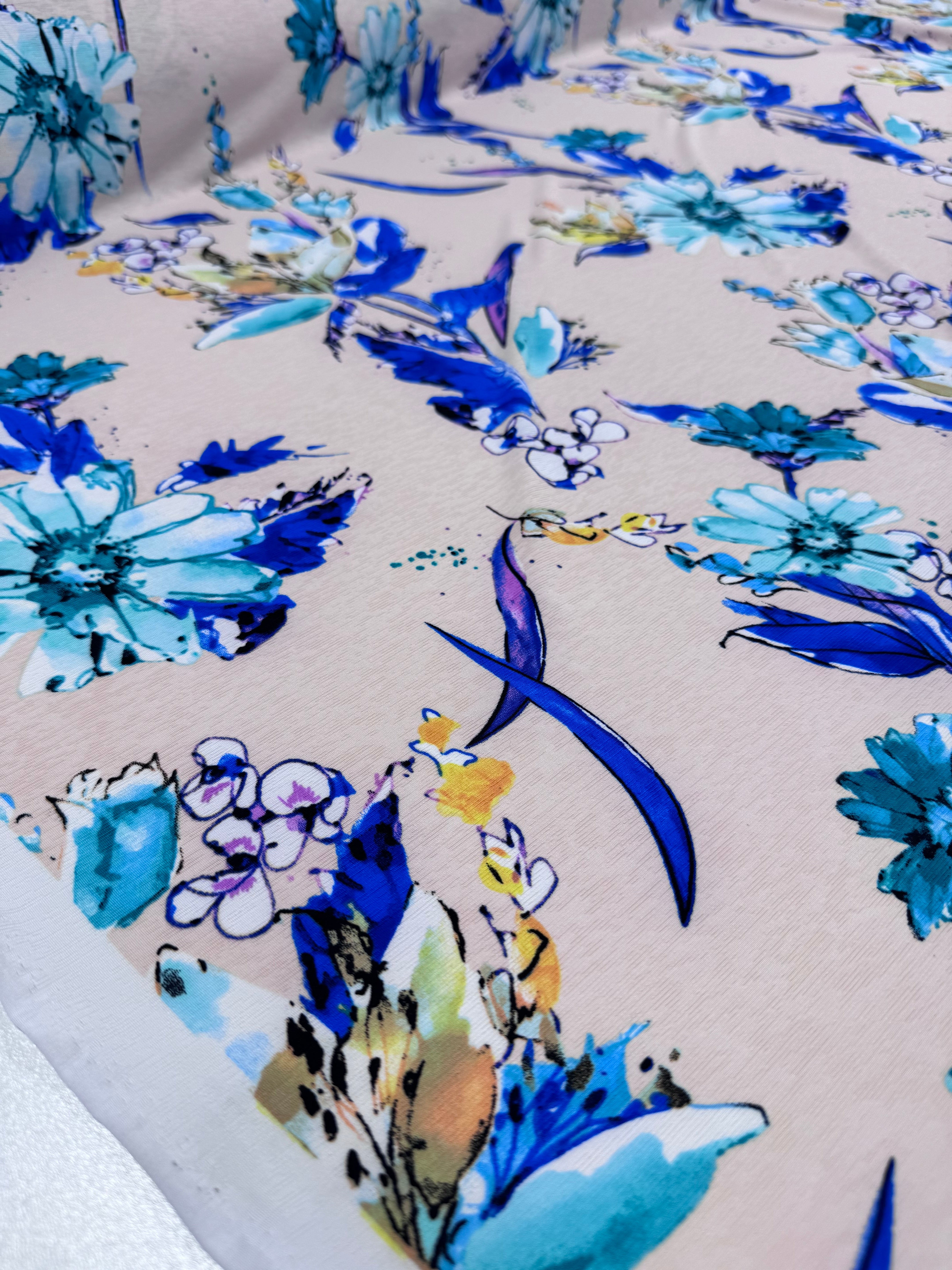 Our Printed Lycra is a Polyester/Spandex fabric that has a two-way stretch and comes in a variety of beautiful prints! Printed Lycra is a medium-weight fabric, has good durability and stretch, and washes well. Our Lycras are perfect for making tops, dresses, skirts, pants, accessories, and even childrenswear.