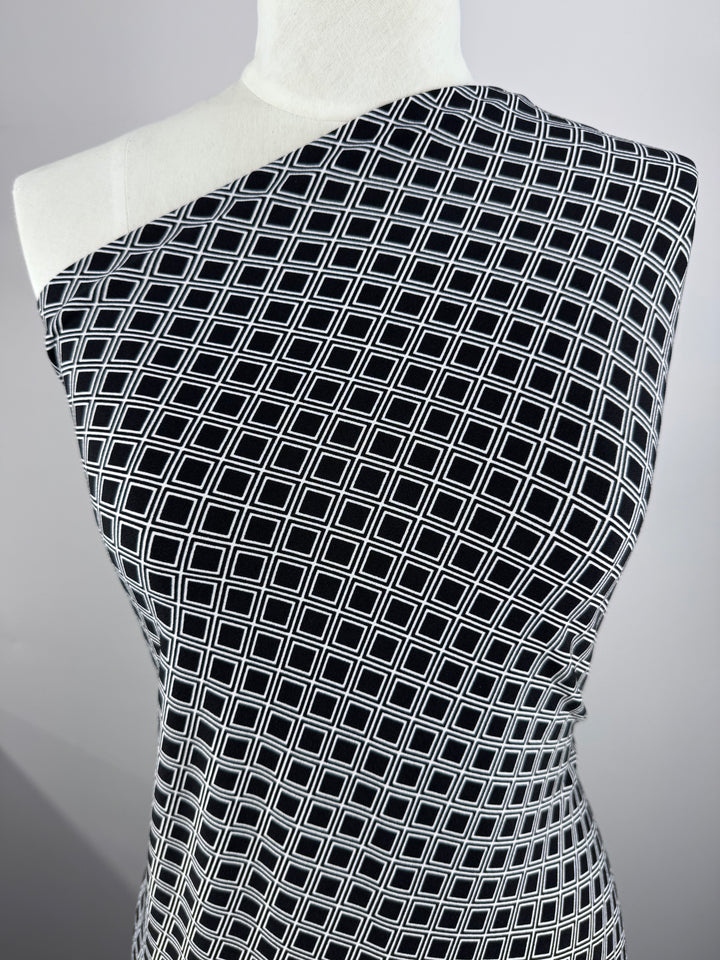 Printed Lycra - Graphite Grid - 150cm