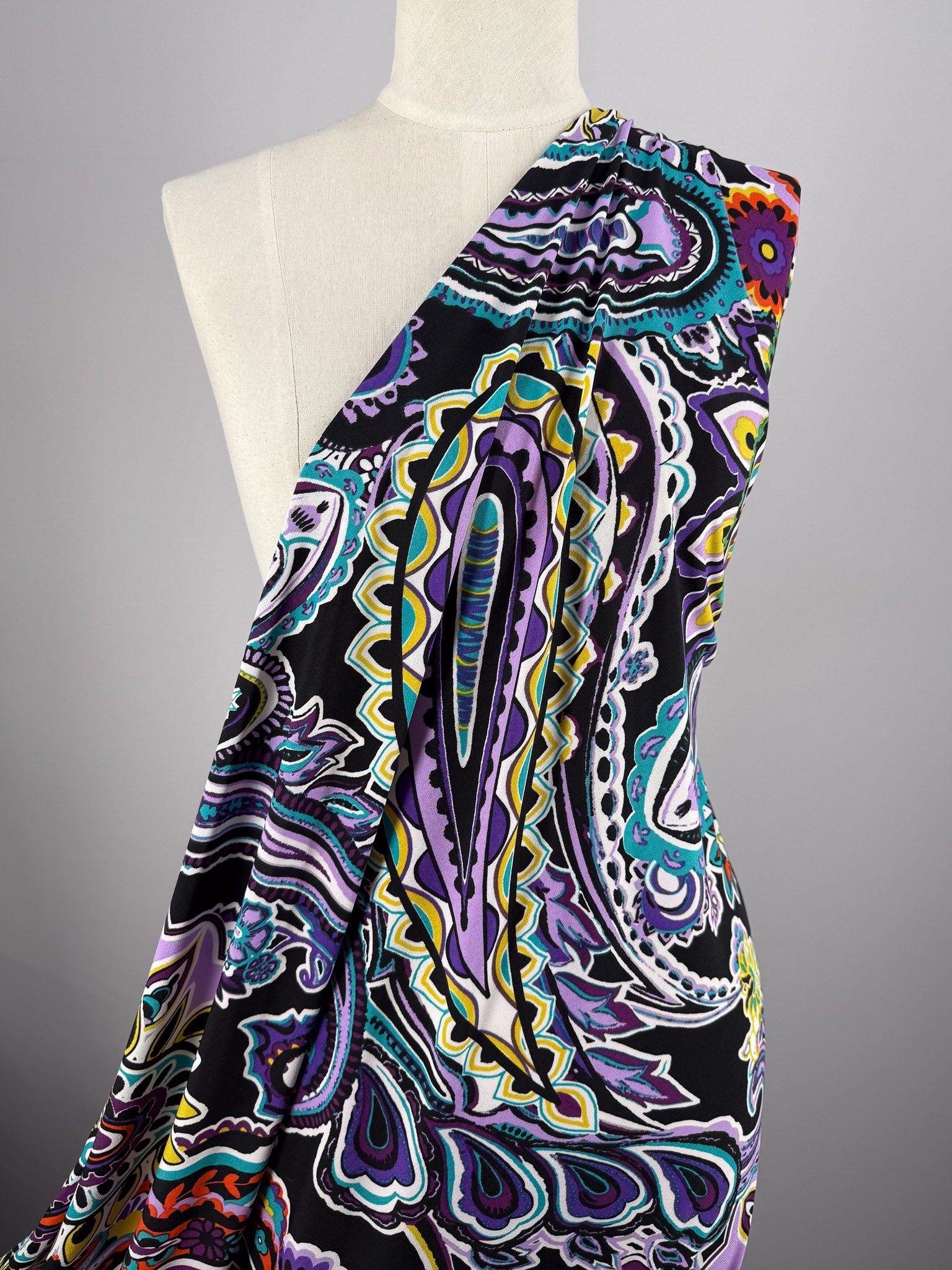 Our Printed Lycra is a Polyester/Spandex fabric that has a two-way stretch and comes in a variety of beautiful prints! Printed Lycra is a medium-weight fabric, has good durability and stretch, and washes well. Our Lycras are perfect for making tops, dresses, skirts, pants, accessories, and even childrenswear.