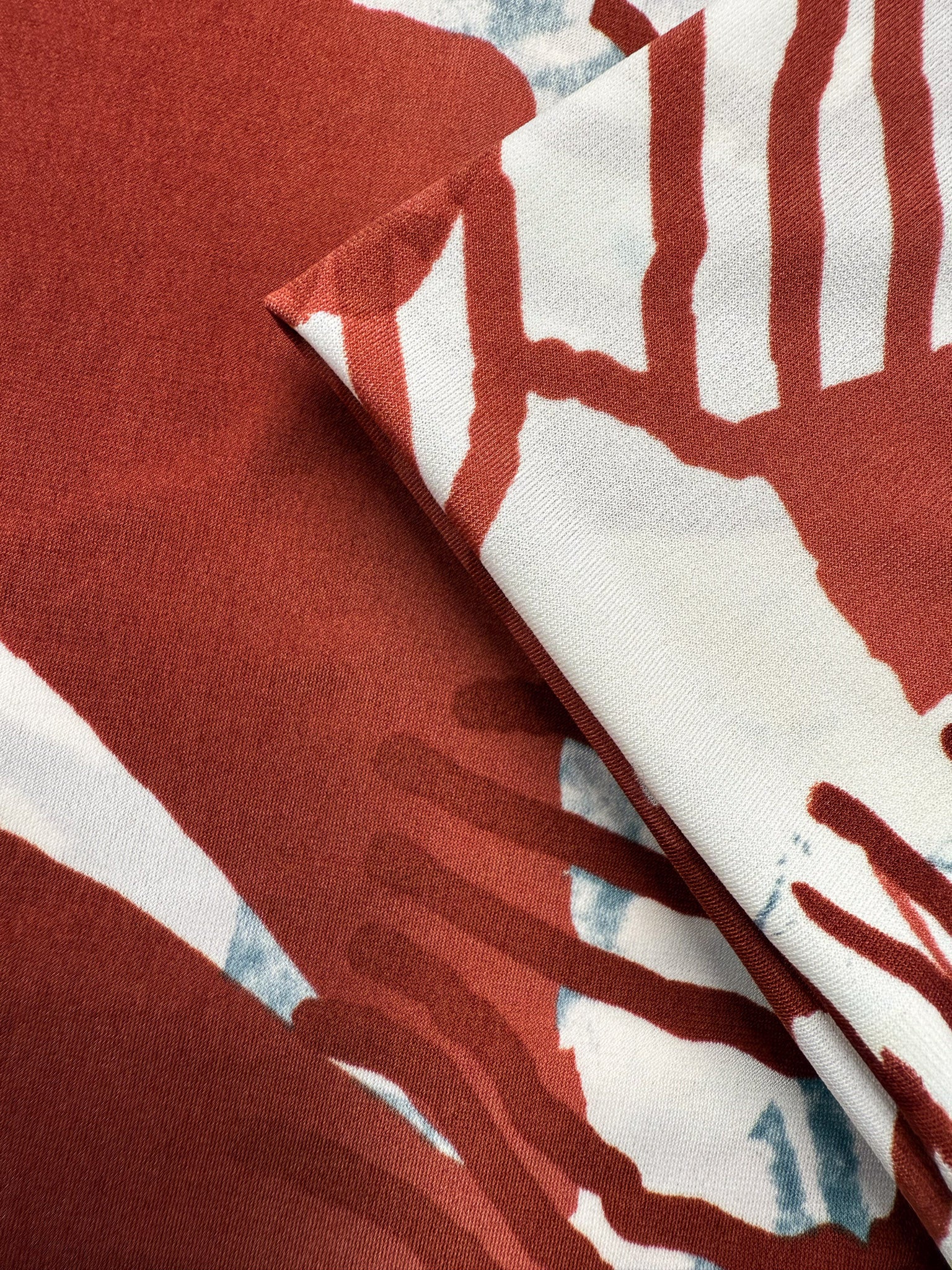 Our Printed Lycra is a Polyester/Spandex fabric that has a two-way stretch and comes in a variety of beautiful prints! Printed Lycra is a medium-weight fabric, has good durability and stretch, and washes well. Our Lycras are perfect for making tops, dresses, skirts, pants, accessories, and even childrenswear.