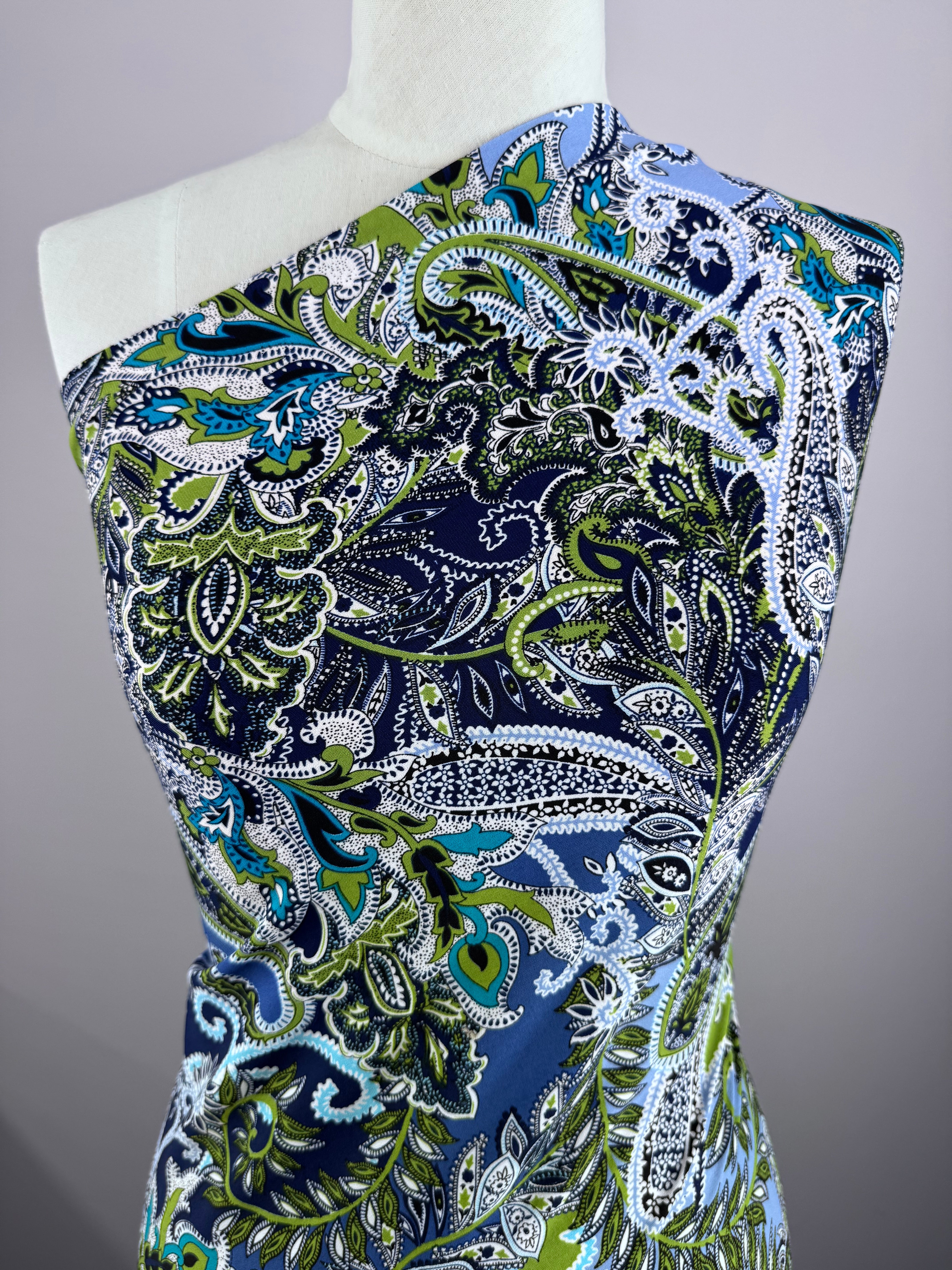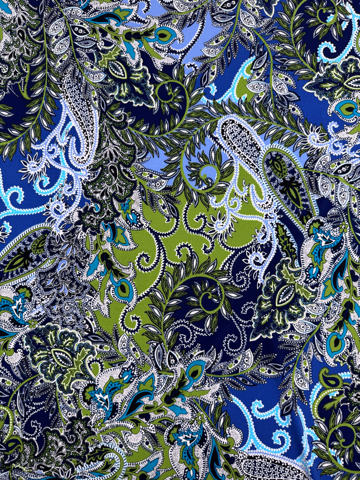 Our Printed Lycra is a Polyester/Spandex fabric that has a two-way stretch and comes in a variety of beautiful prints! Printed Lycra is a medium-weight fabric, has good durability and stretch, and washes well. Our Lycras are perfect for making tops, dresses, skirts, pants, accessories, and even childrenswear.