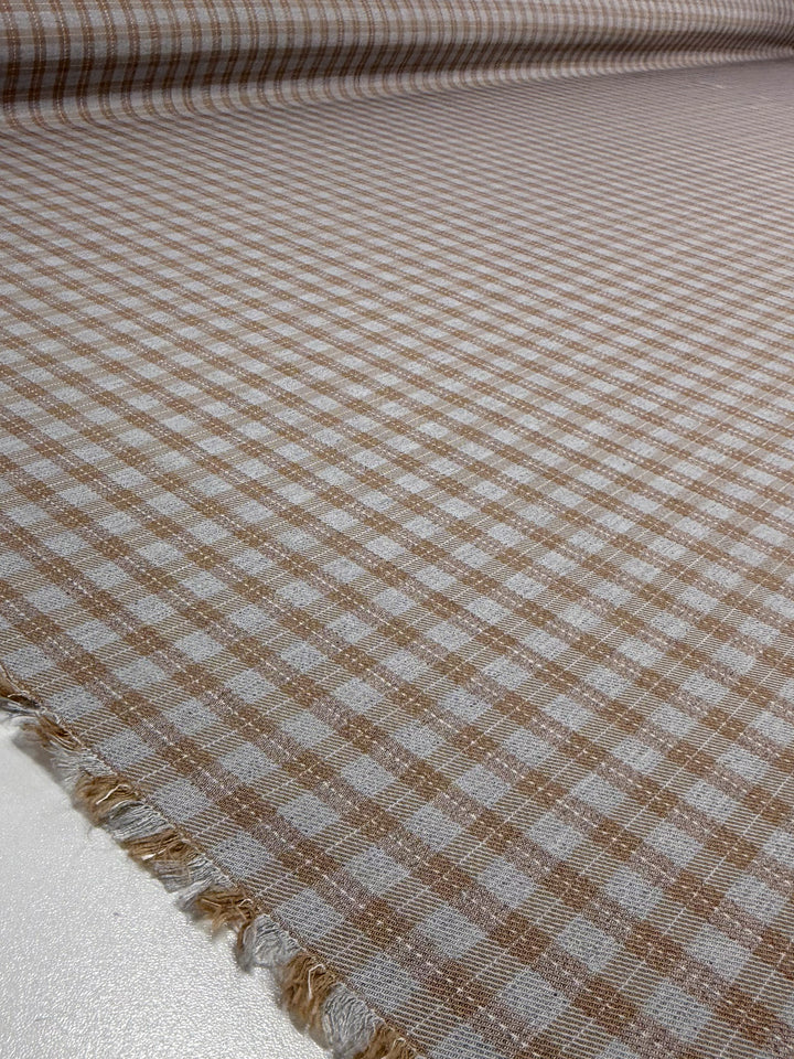This pure linen has a soft neutral palette with a woven tan and oat check, balanced and versatile.