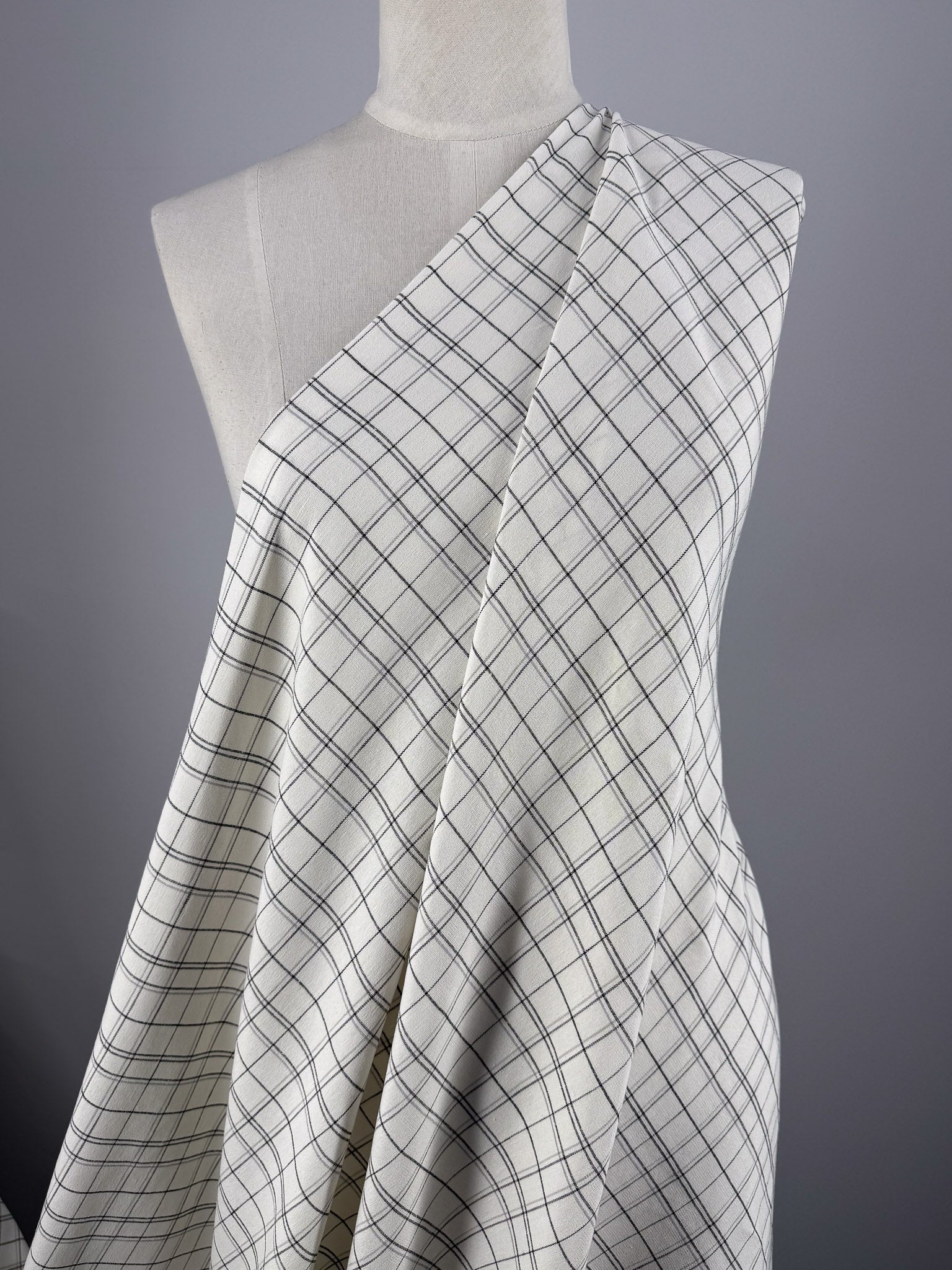 Stretch Linen - Mono Mini Check - 130cm