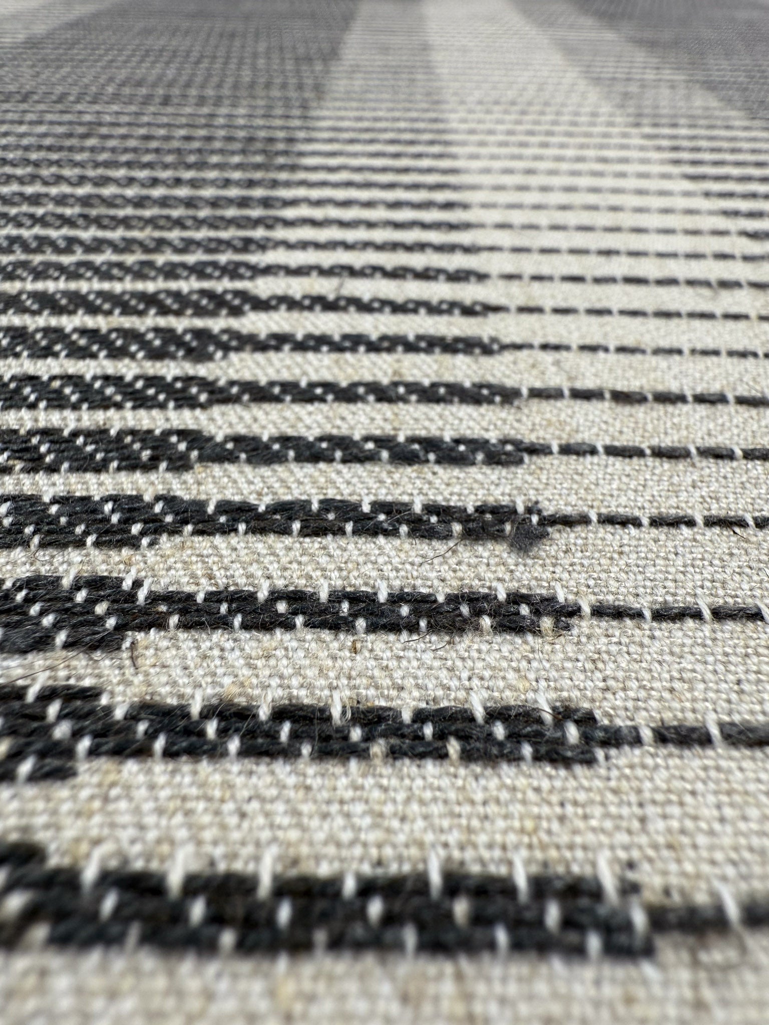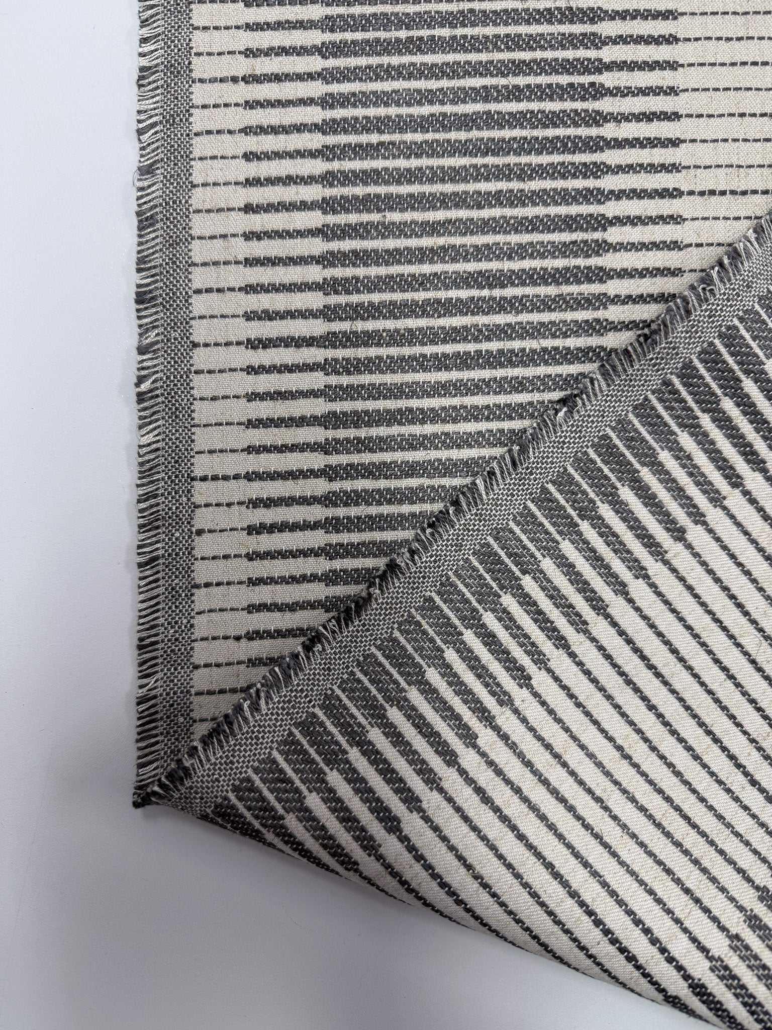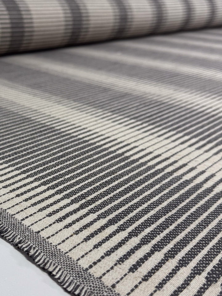 Pantone Cool Gray 9 C, off-white and charcoal woven stripe.