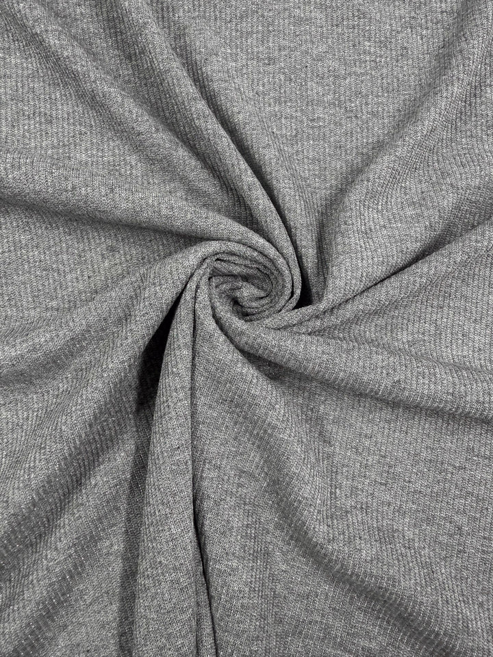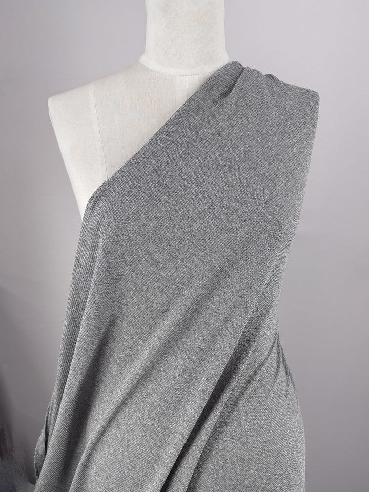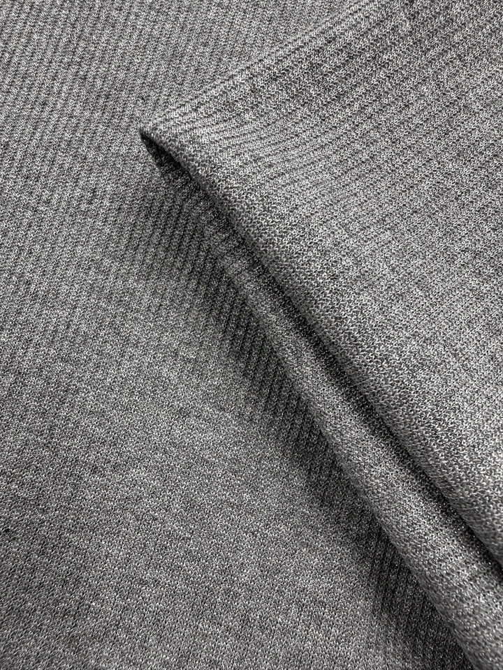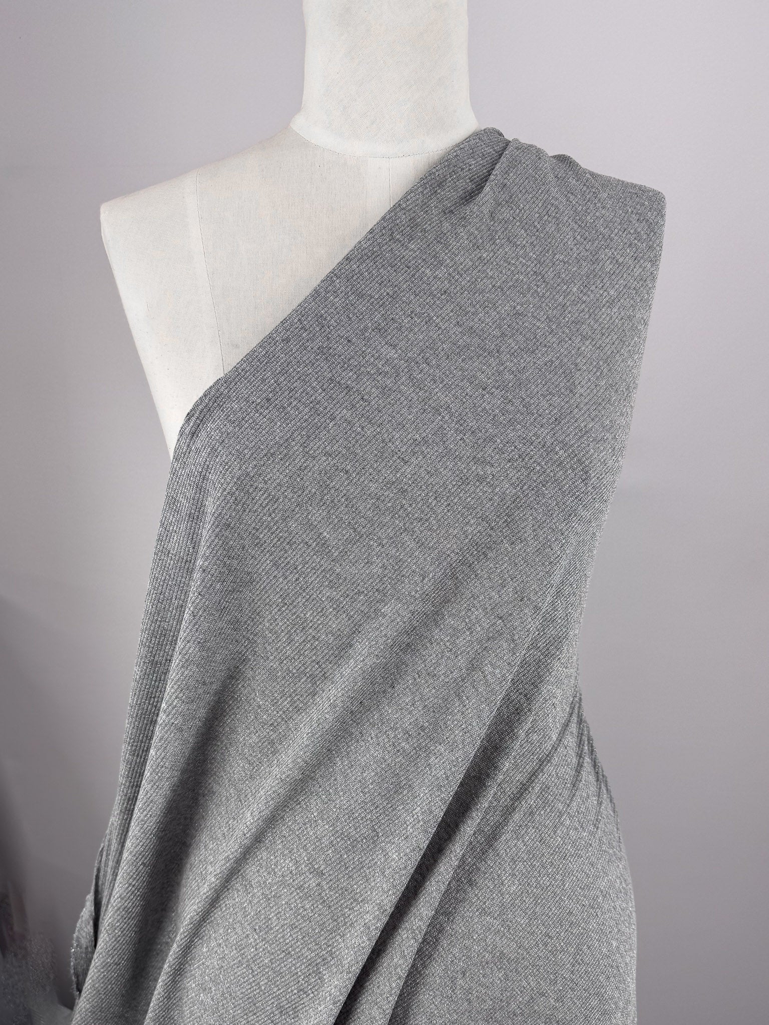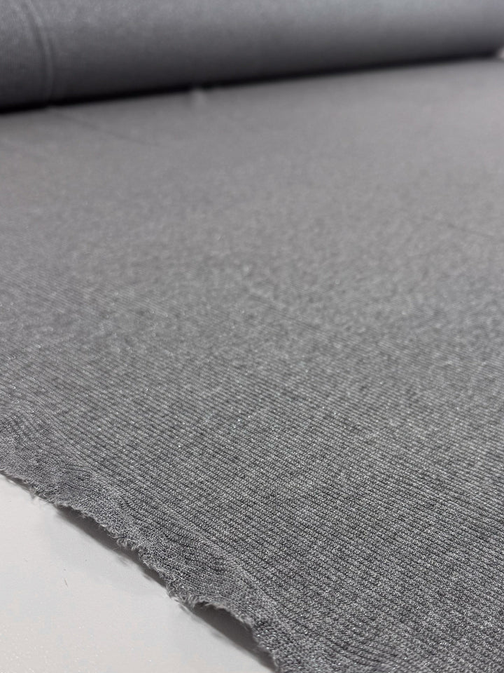 A silver grey viscose lurex knit with a clean, refined finish, added metallic effect from lurex.